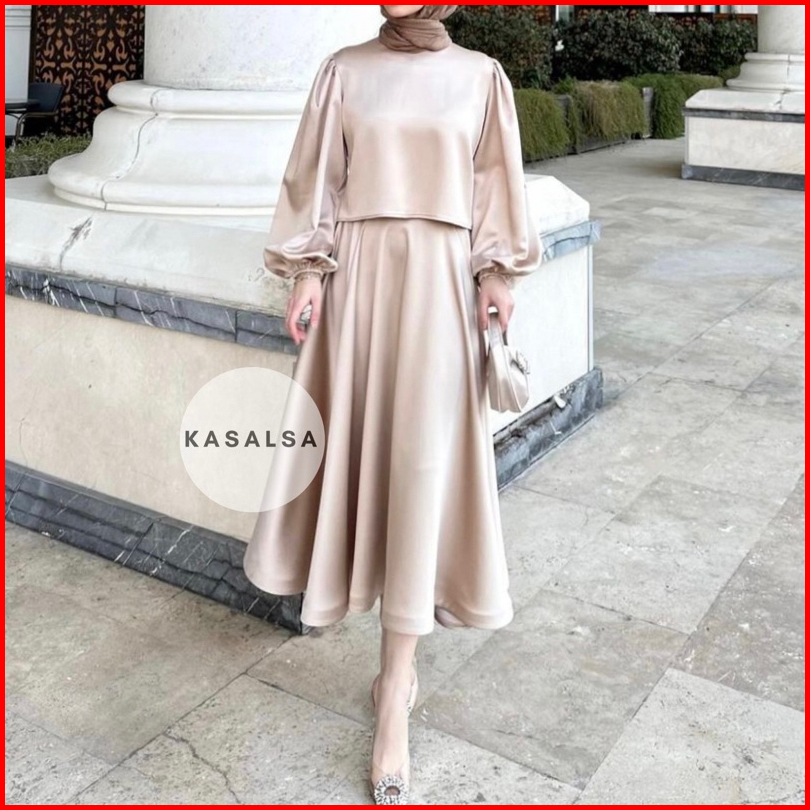 Kasalsa.id - Heeza Outfit Set Wanita Atasan Crop Rok Panjang