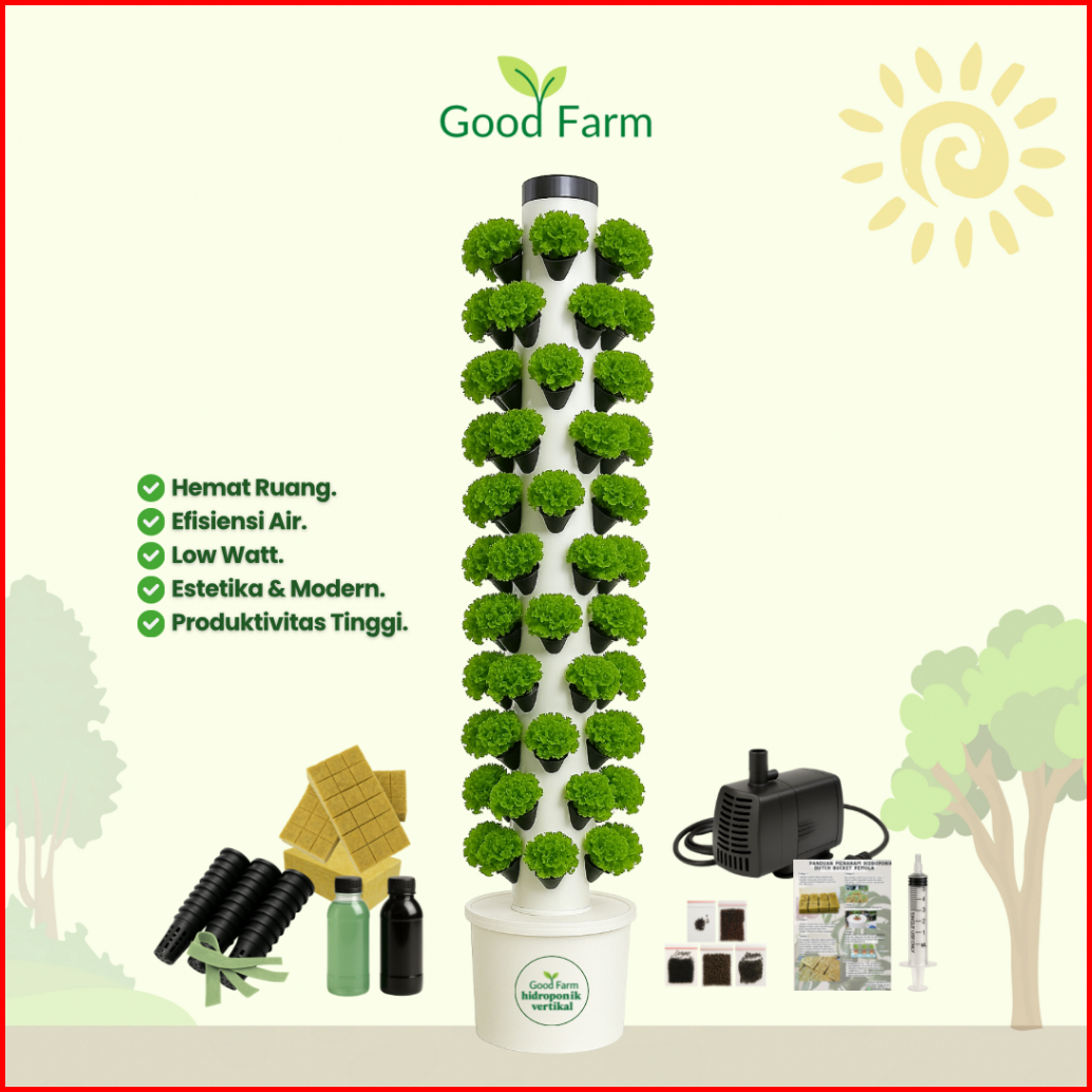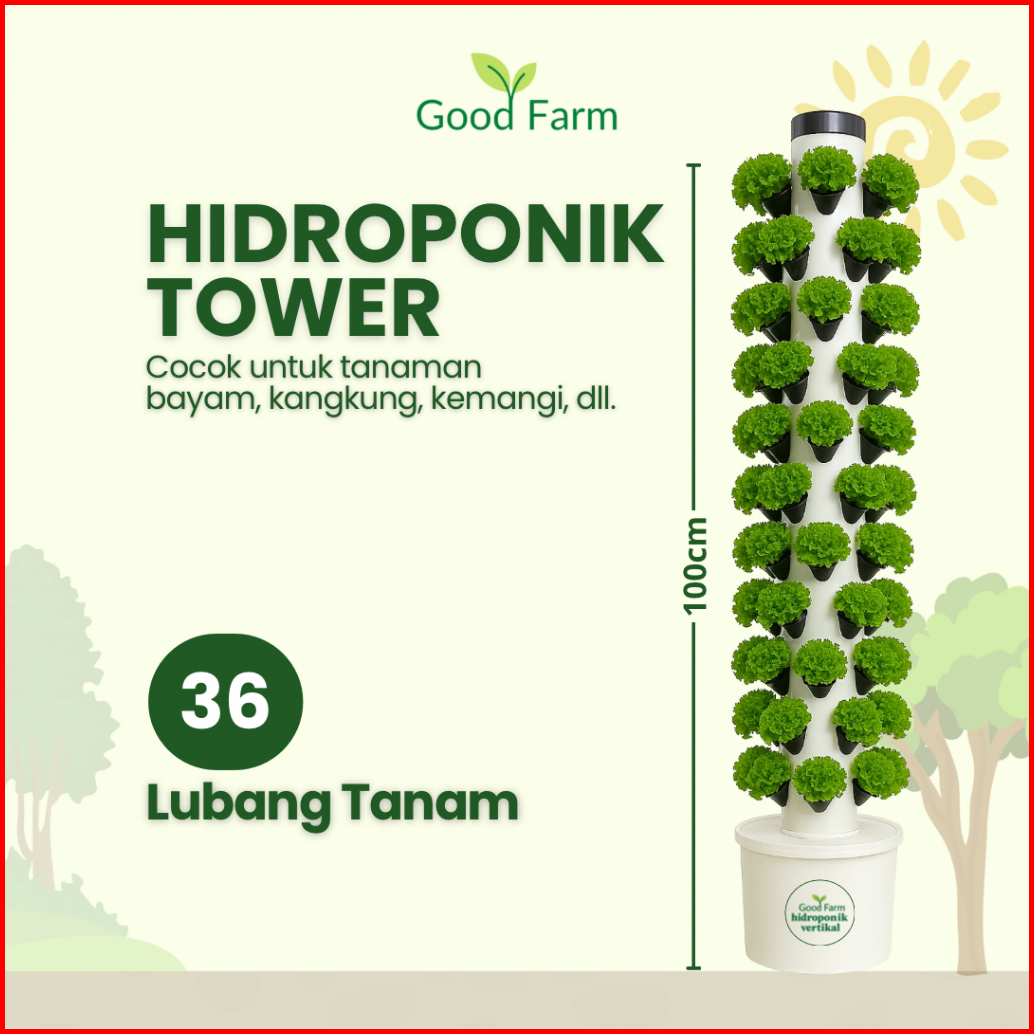 Goodfarm - Hidroponik Tower Vertikal 36 Lubang Vertical Farming Urban Farming Hemat Tempat