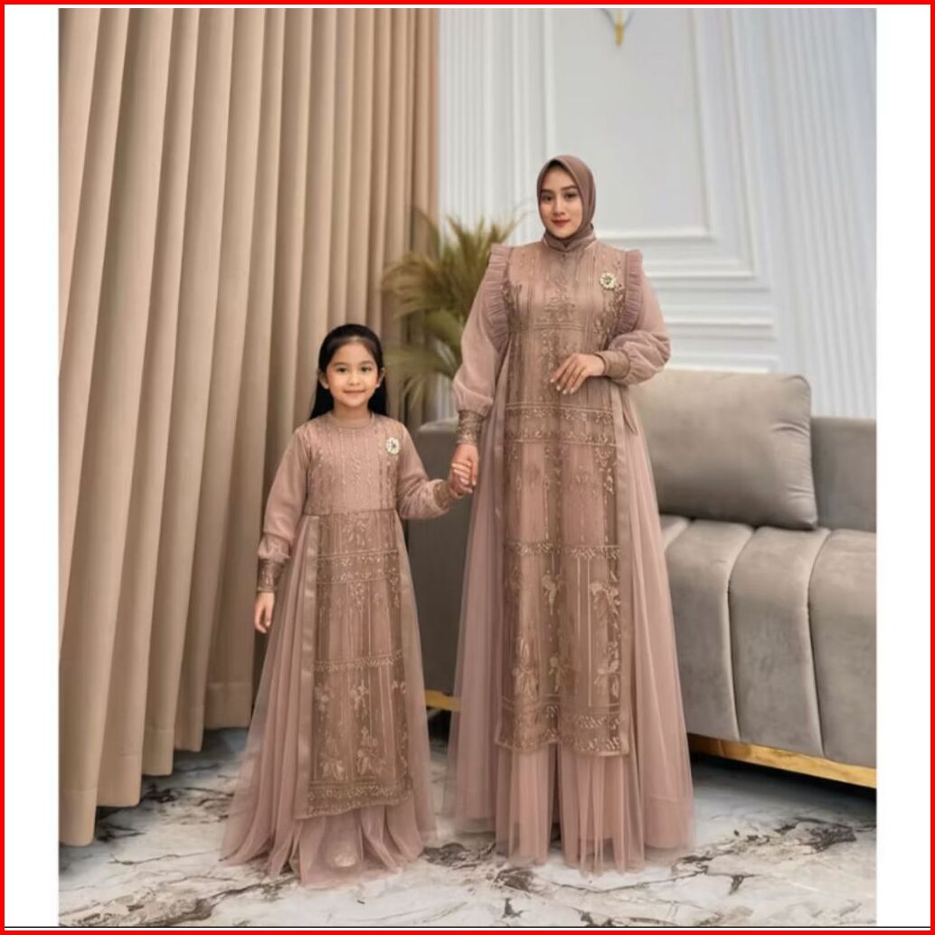 Queen Mour - Nikita Gamis Sarimbit Ibu Anak Perempuan Bahan Silk Mix Brukat Dress Couple Lebaran