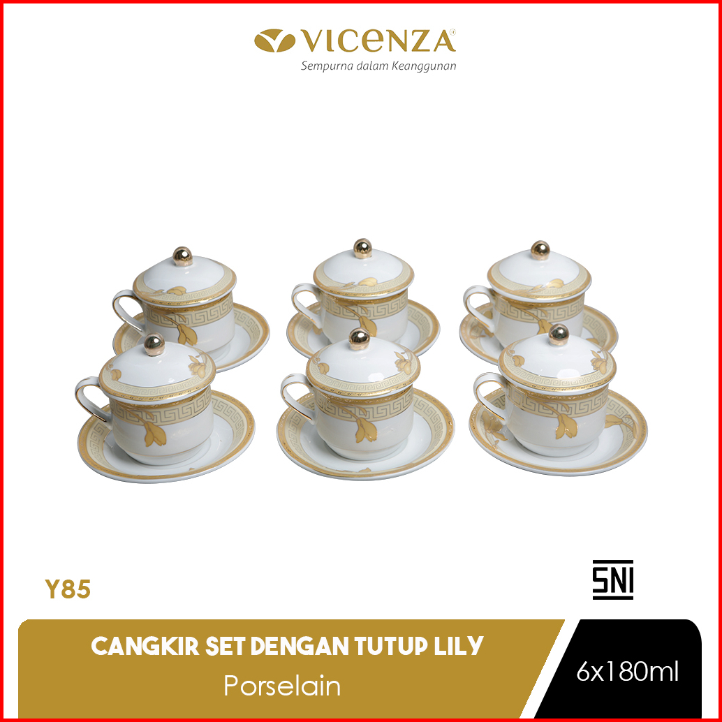 Vicenza Tea Set - Cangkir Lepek Dengan Tutup Y85 Motif