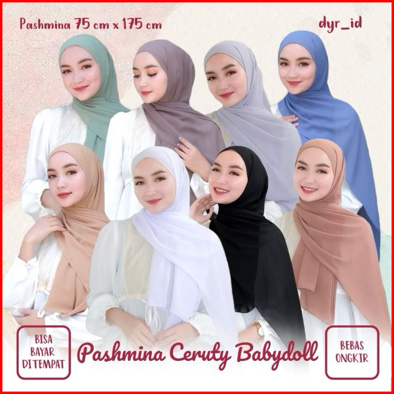 Pashmina Ceruty Babydoll Premium Jahit Tepi
