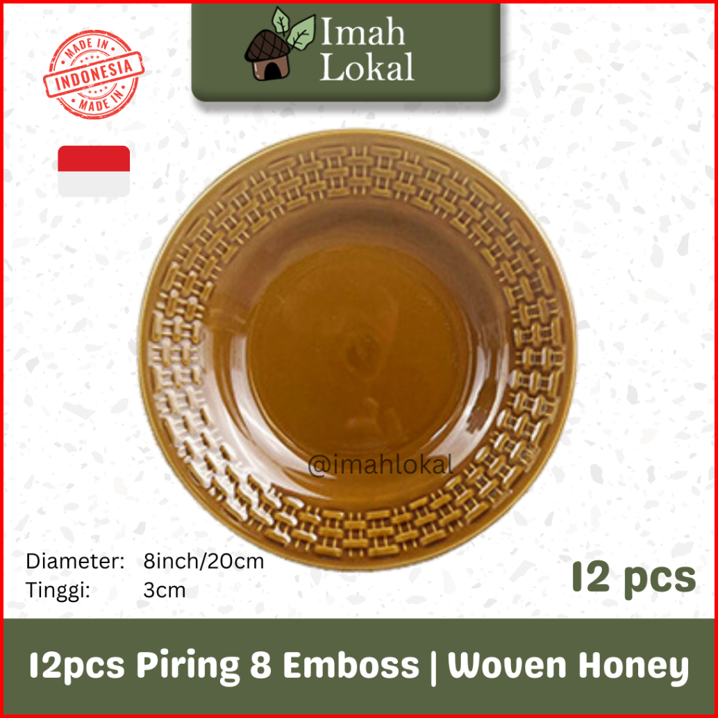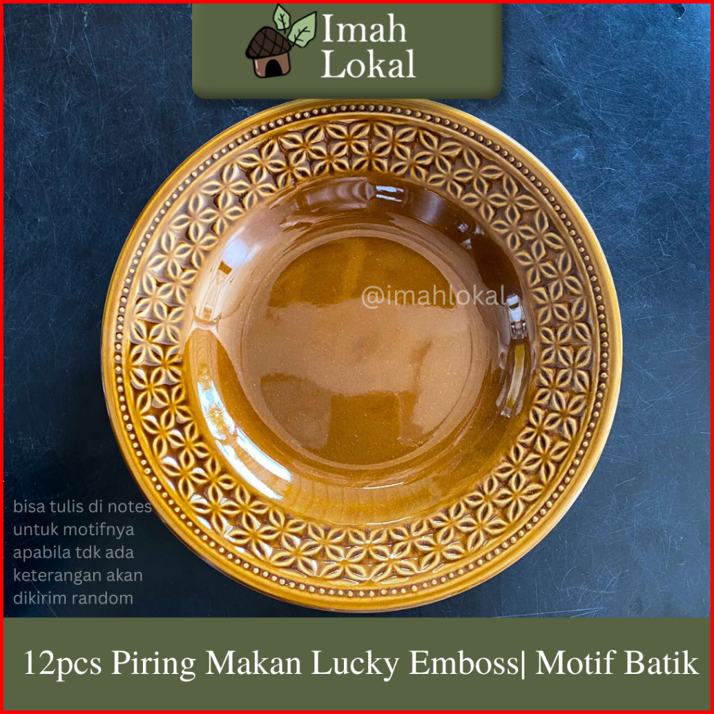 12pcs Piring Keramik Lucky Embos 8 Inch Piring Makan Coklat