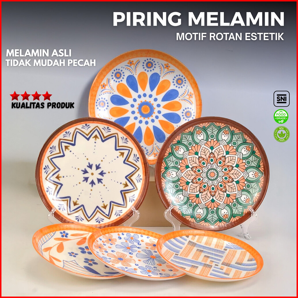 Piring Melamin Motif Keramik 8 9 Inch Cekung Bulat Tanpa Sekat Piring Makan Tebal