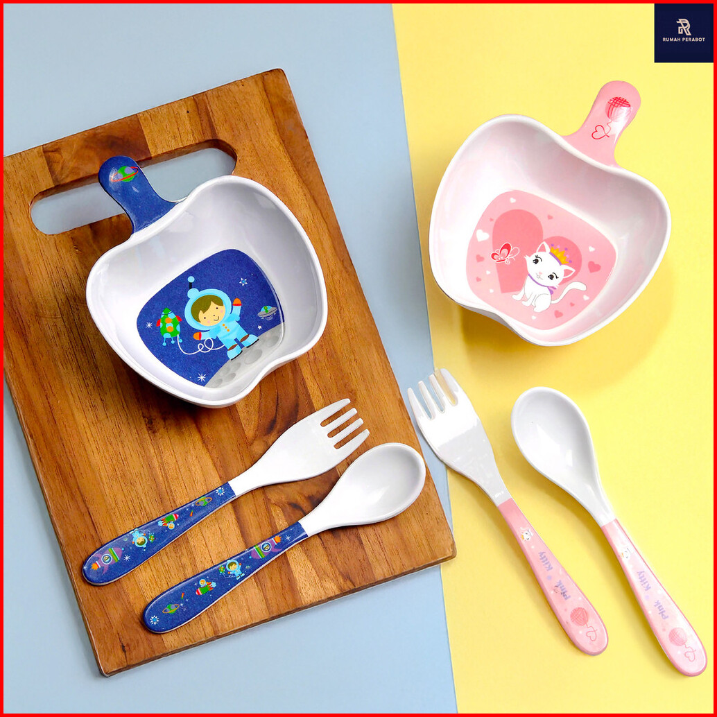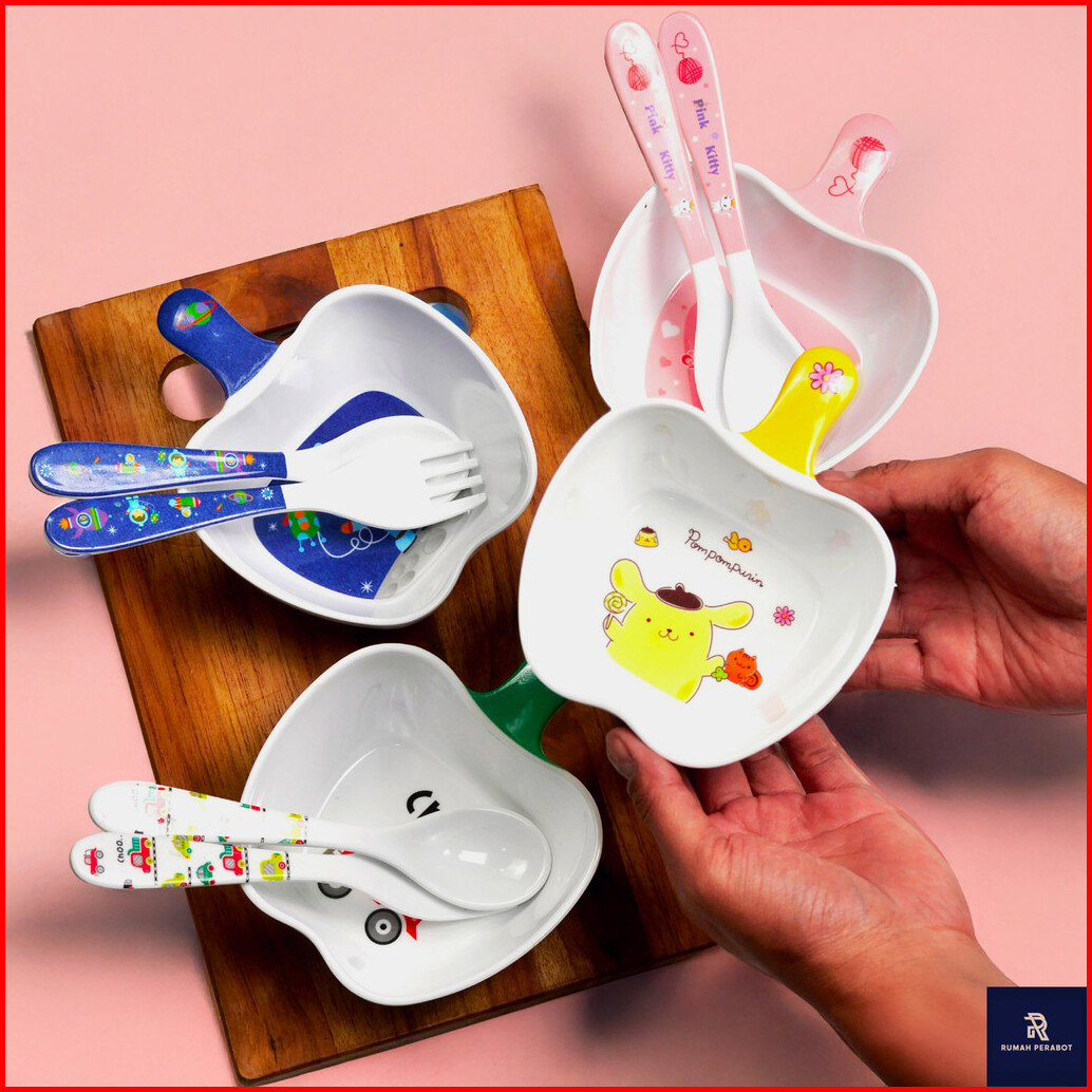 Set Alat Makan Anak Bayi Melamin 3in1 Mangkuk Sendok Garpu Melamin Sni