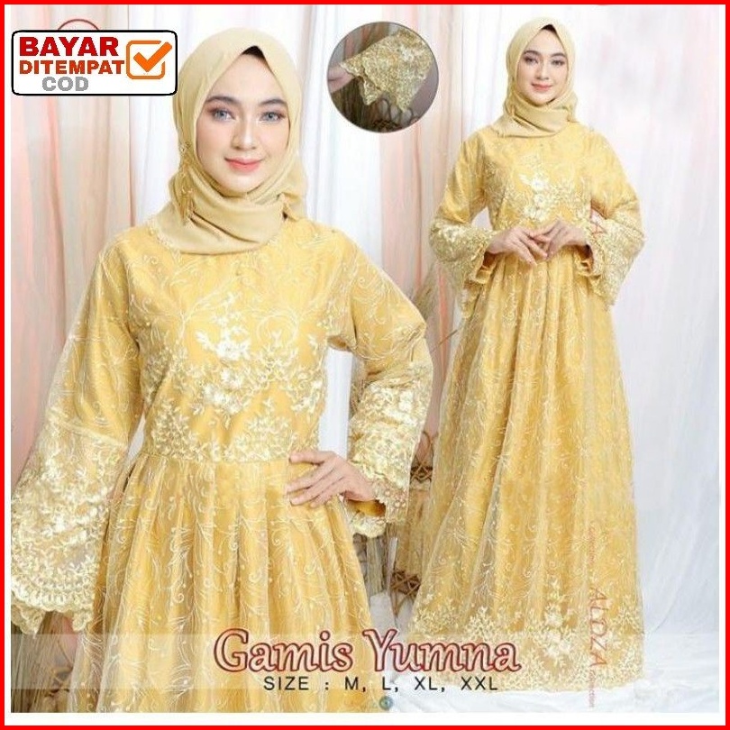 Size L Xl Xxl Gamis Pesta Gamis Jumbo Maxi Dress Gamis Tile Gamis Maxi Brokat Yumna