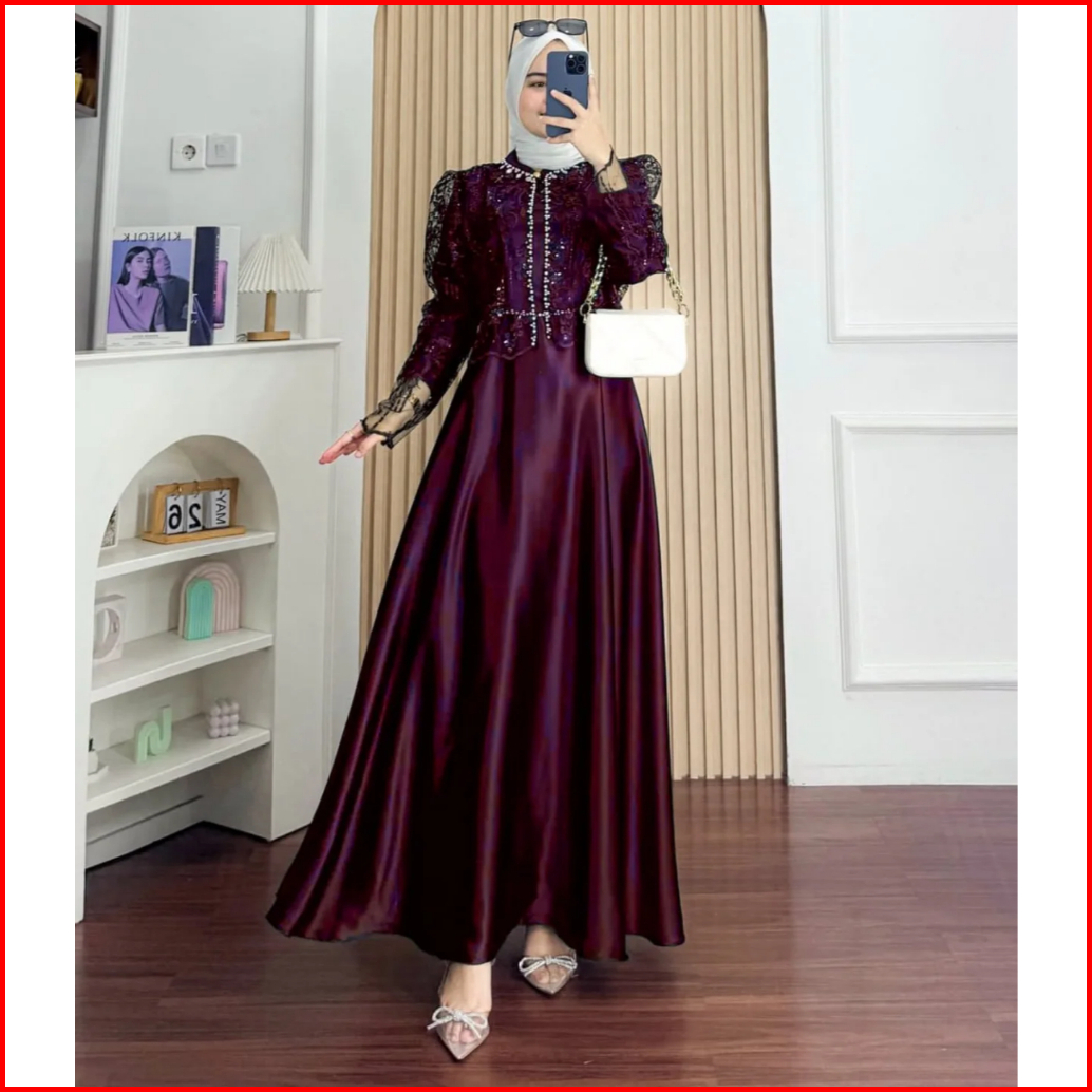 Sakura Set Premium Inner Outer Brokat Tunik Kondangan Setelan Wanita Pesta Mewah Elegan Mahogany
