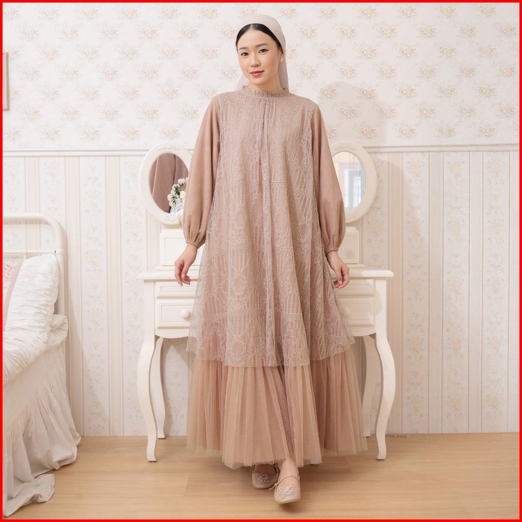 Hijabchic Syahira Mocca Dress - Gaun Brukat Tulle Kondangan Elegan Best Seller