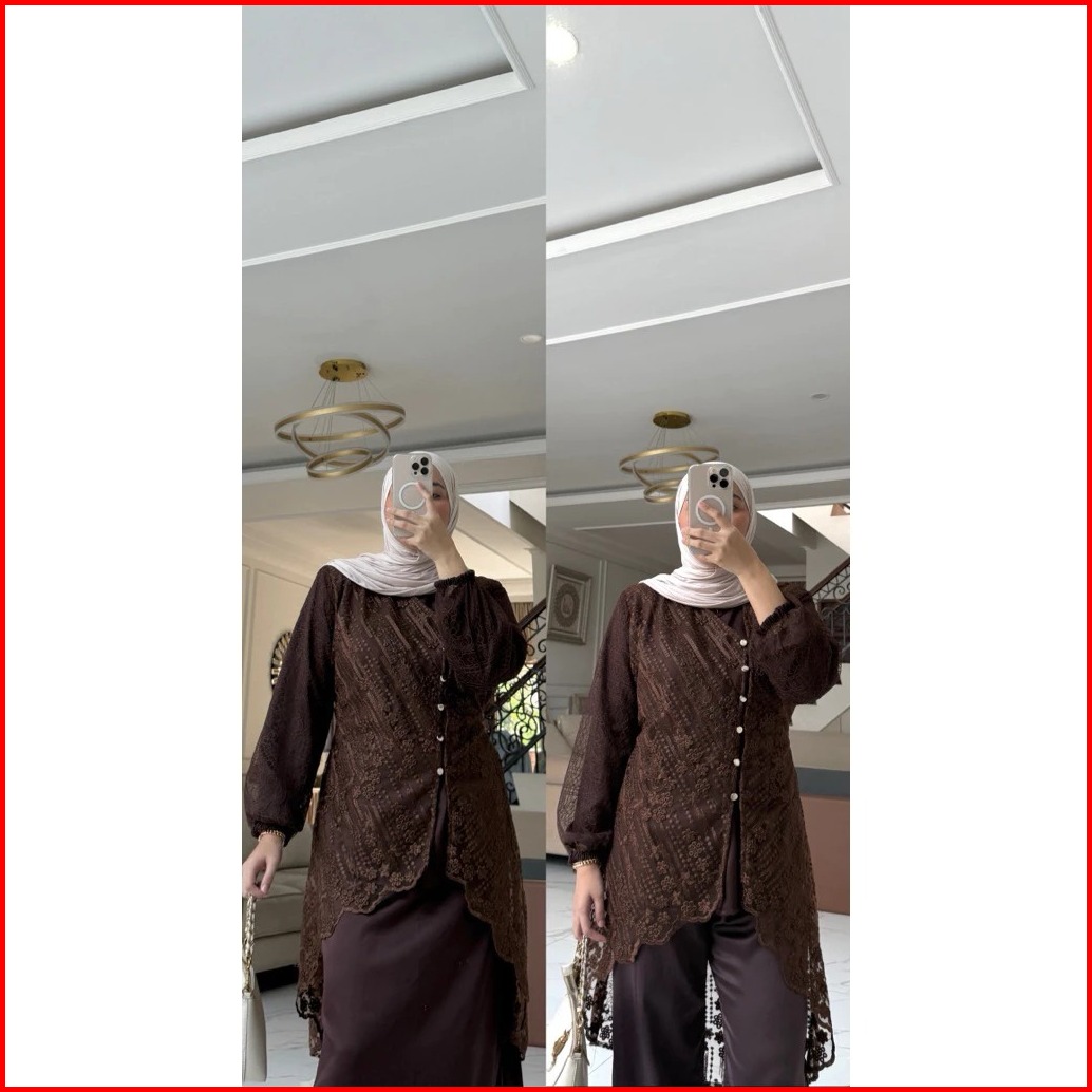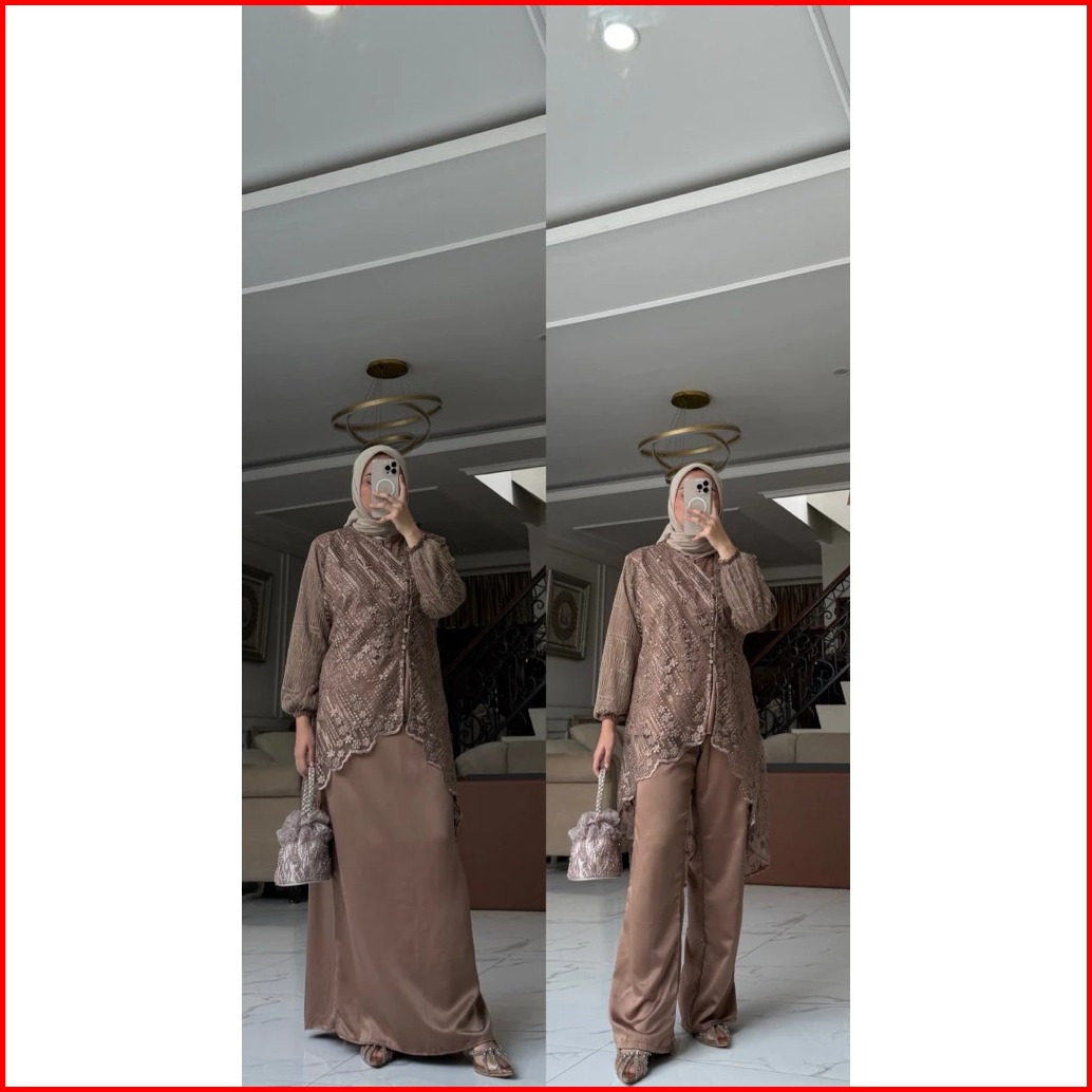 Halwa Setelan Celana Rok Wanita Brukat Chantily Busui Warna Taro Mahogany Burgundy Emerald Baju Kondangan Pesta Wisuda B