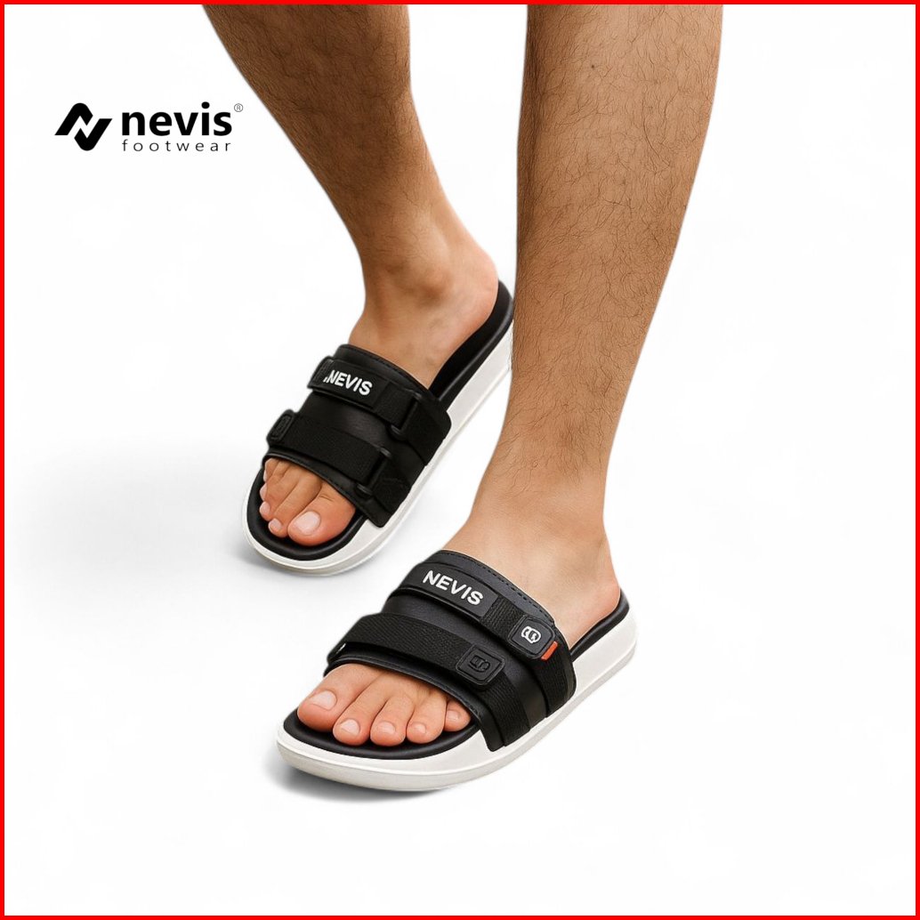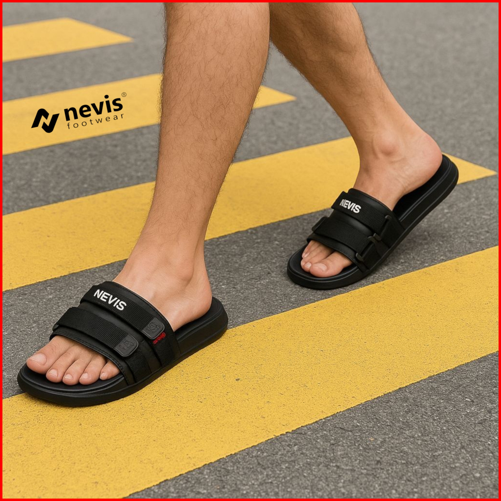 Nevis Sandal Slop Pria Gorka Original Sendal Slide Casual Distro Hitam