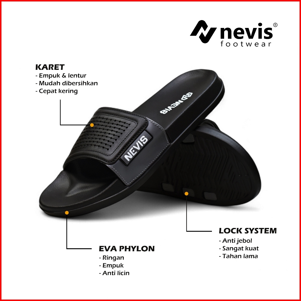 Nevis Sendal Selop Distro Pria Reno Original Hitam Sendal Slip On Pria Sendal Slop Sendal Slide Sandal Karet