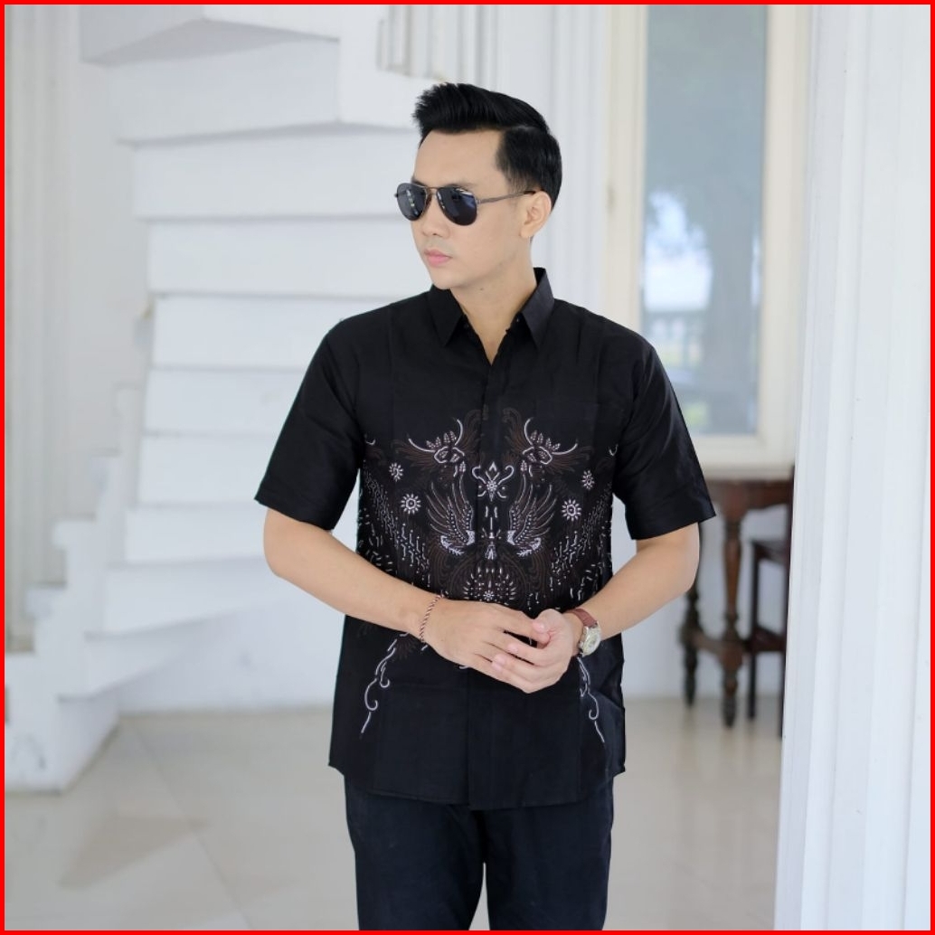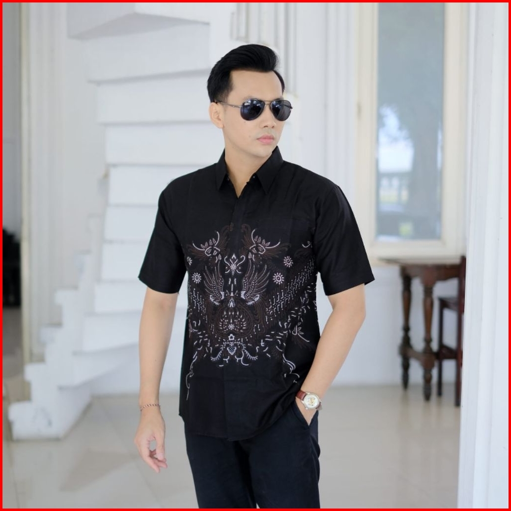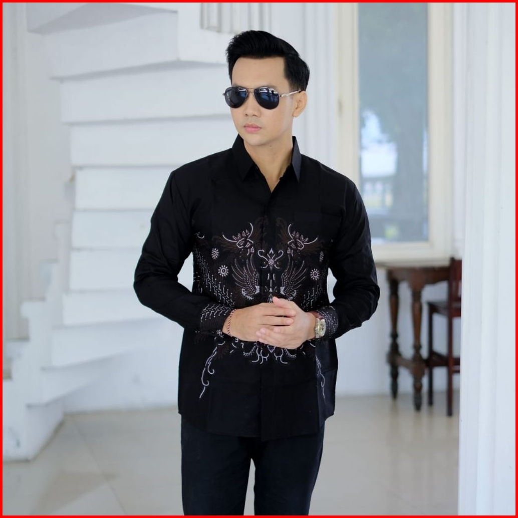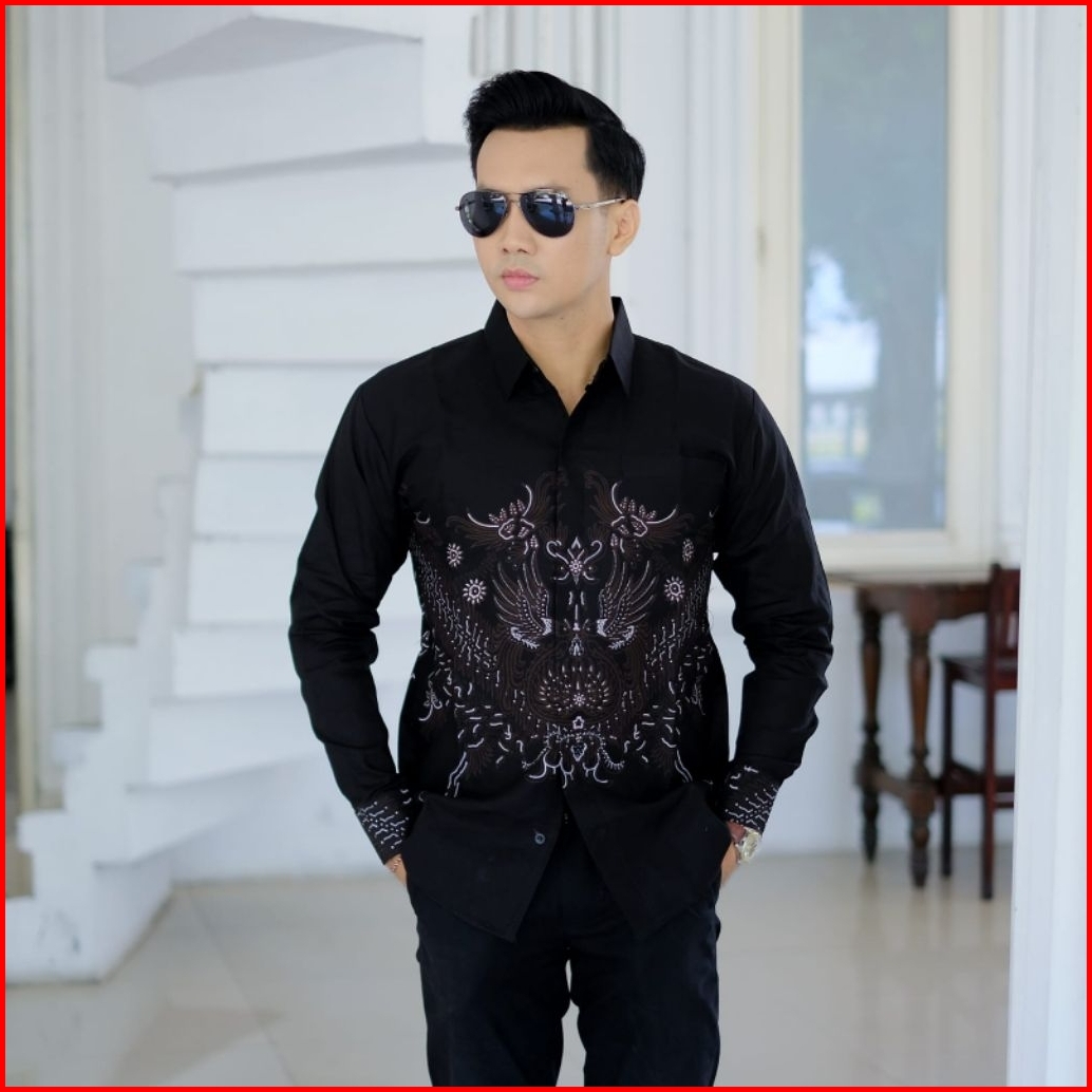 Kemeja Batik Pria Slimfit Motif Wasesa Batik Hitam Pria Bahan Katun Halus