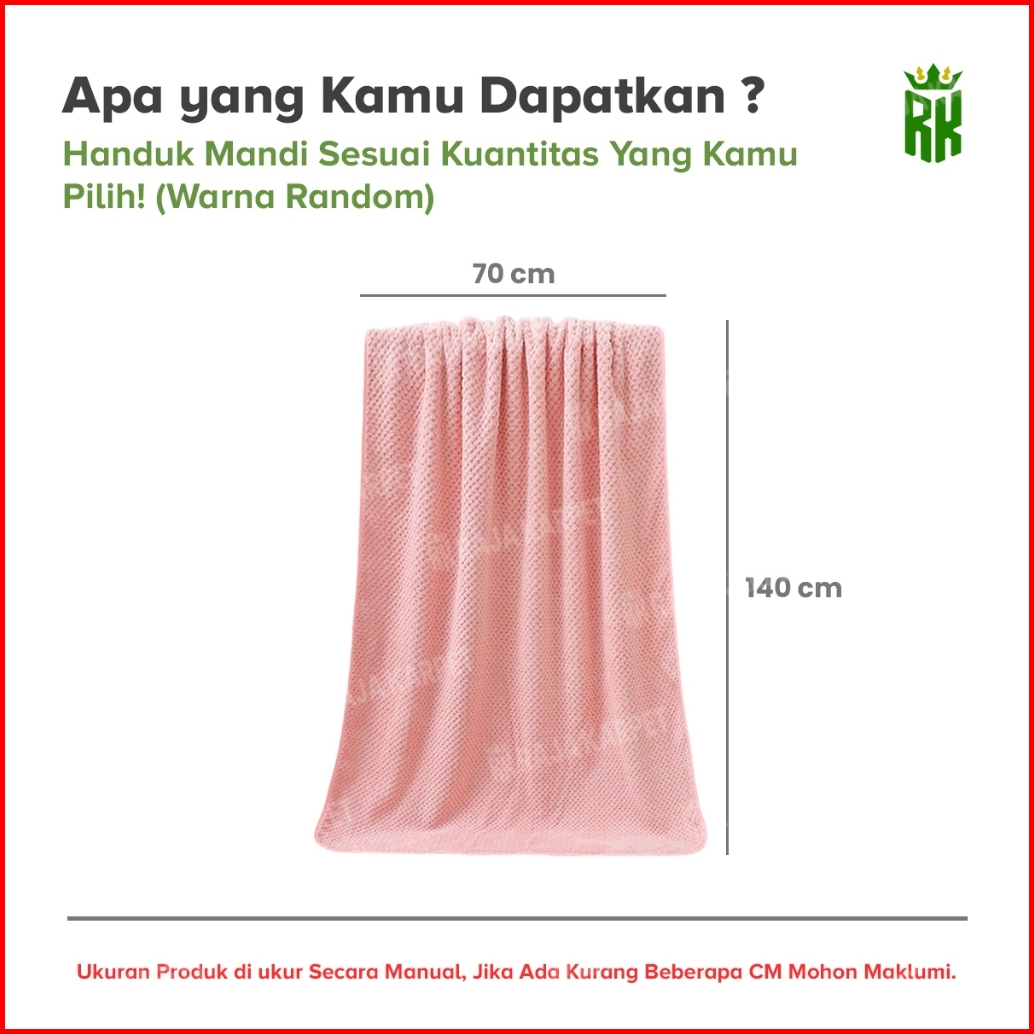 Raja Karpet - 3 Pcs Handuk Mandi Polos Bahan Microfiber Daya Serap Tinggi Handuk Lembut Warna Polos
