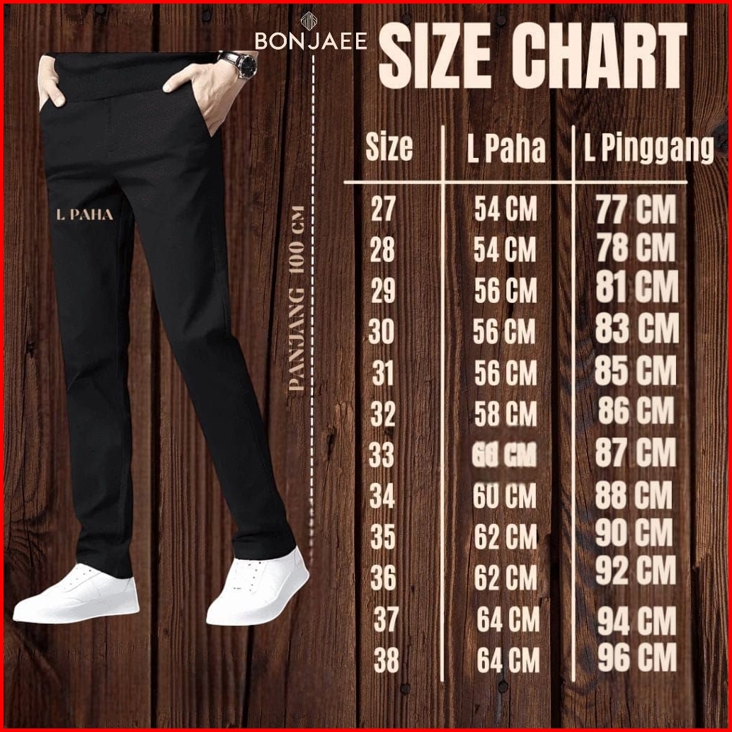 Bonjaee - Celana Pria Chino Premium Panjang 100cm Cream Slim Fit