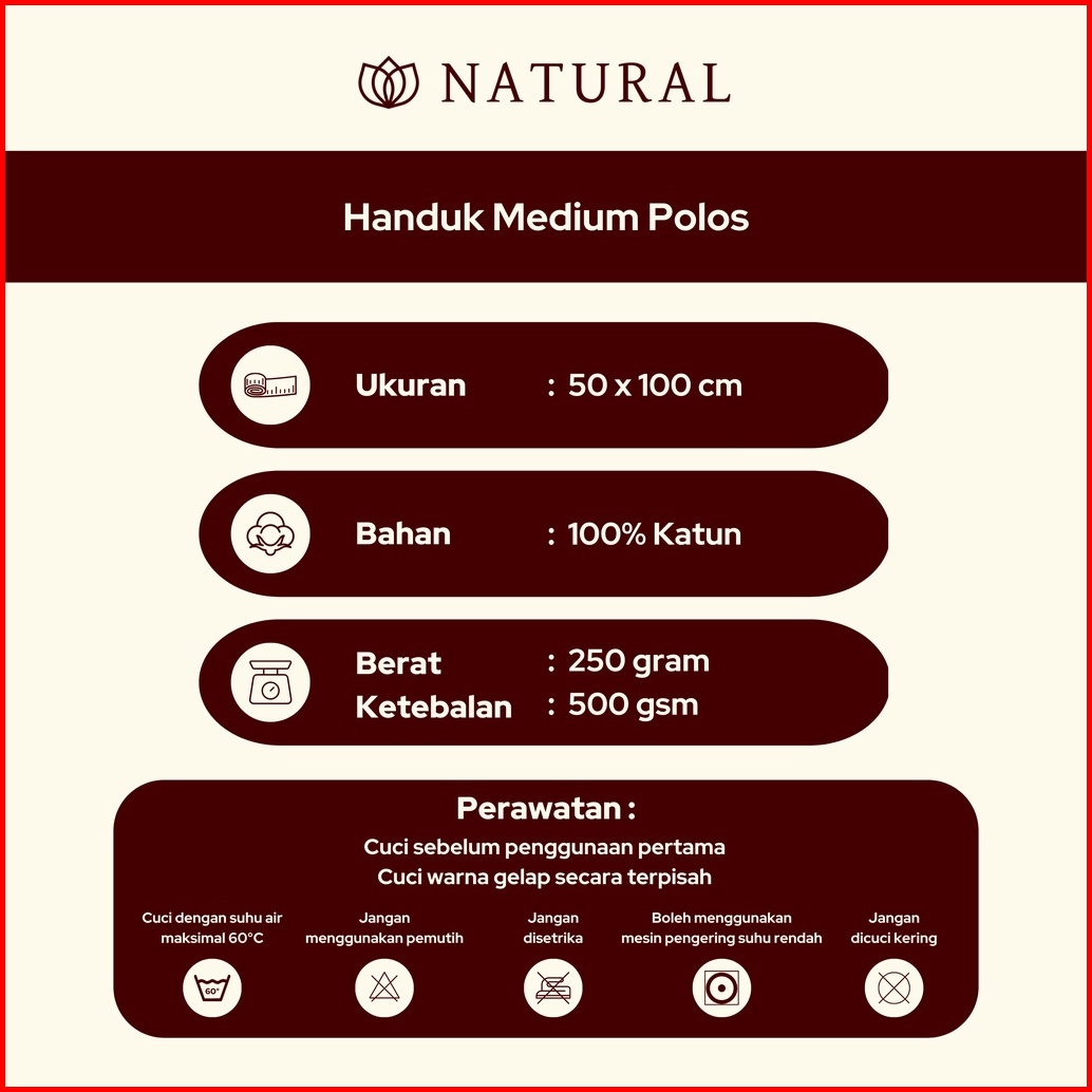 Handuk Mandi Natural By Chalmer 50 X 100 Cm Ukuran Medium Handuk Travel Kualitas Premium