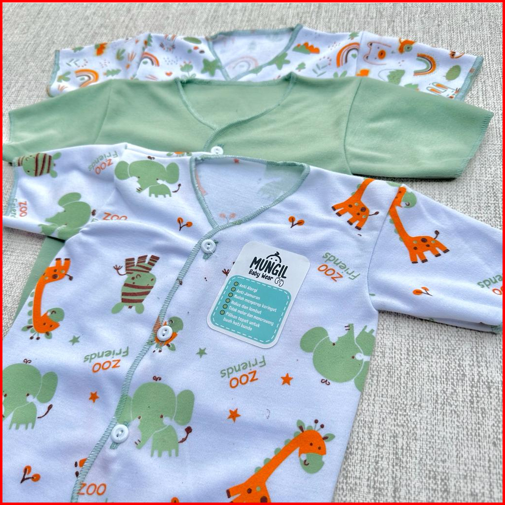 3 Pcs Baju Bayi Baru Lahir Baju Lengan Pendek Seri Sage Green Newborn Mungil Baby Wear