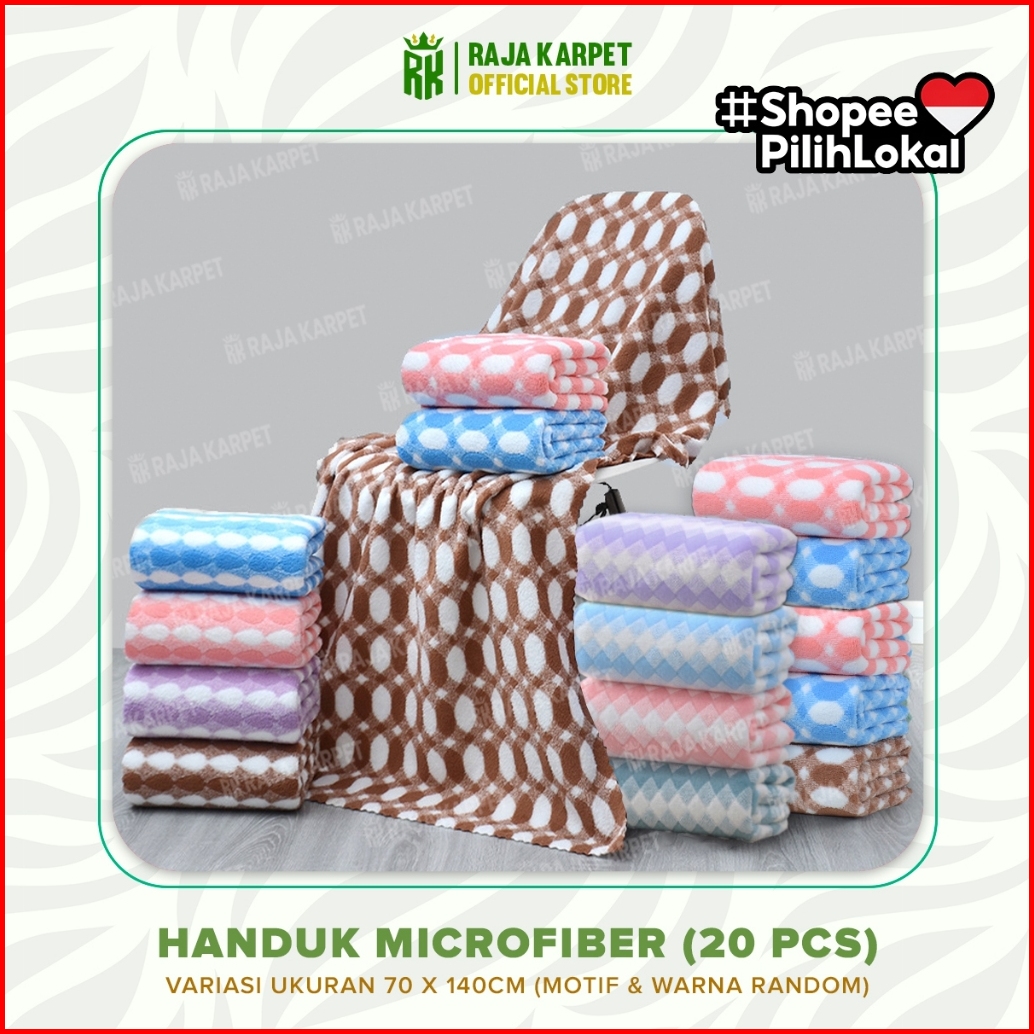 Raja Karpet Handuk Mandi 70x140cm Paket 20 Pcs Handuk Microfiber Lembut Handuk Dewasa Serap Air