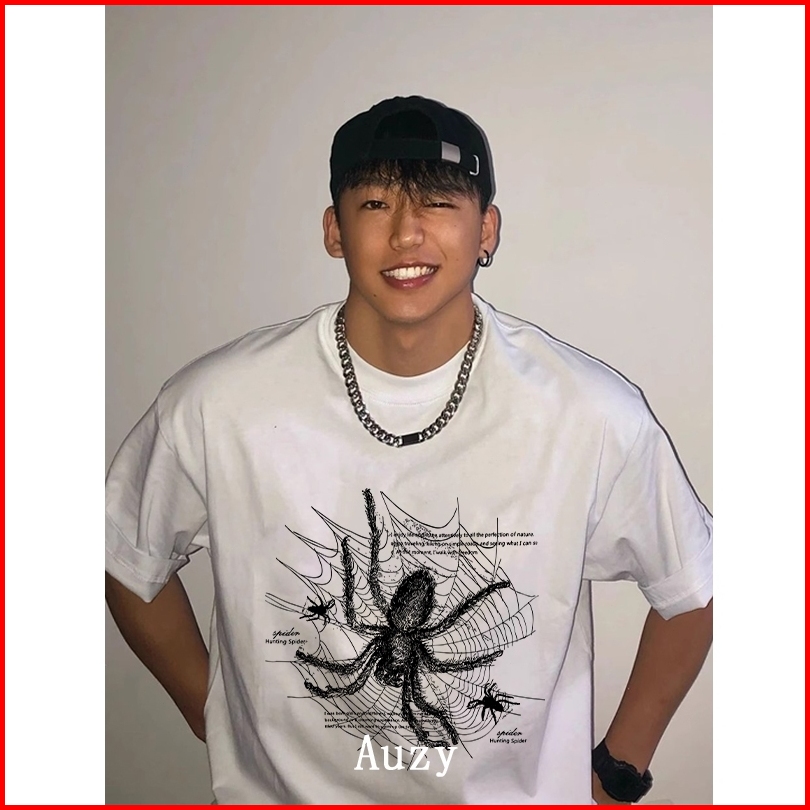 Auzy Laba-laba Retro Kaos Pria Wanita Atasan Lengan Pendek T-shirt Skena Baju Oversize T Shirt Distro Original 100