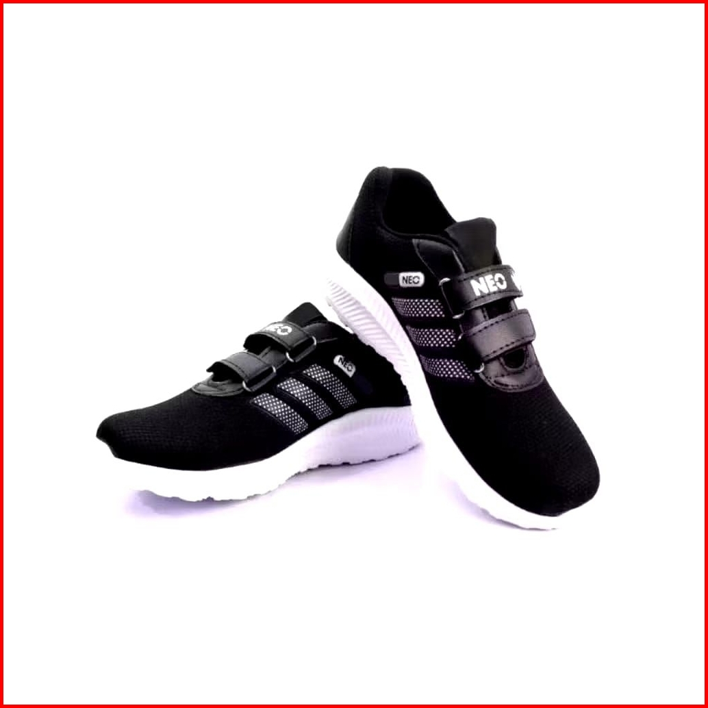 Sepatu Anak Perempuan Laki Laki Sekolah Olahraga Sd Tk Paud Hitam Neo Kretekan Velcro Size 27-38 Termurah