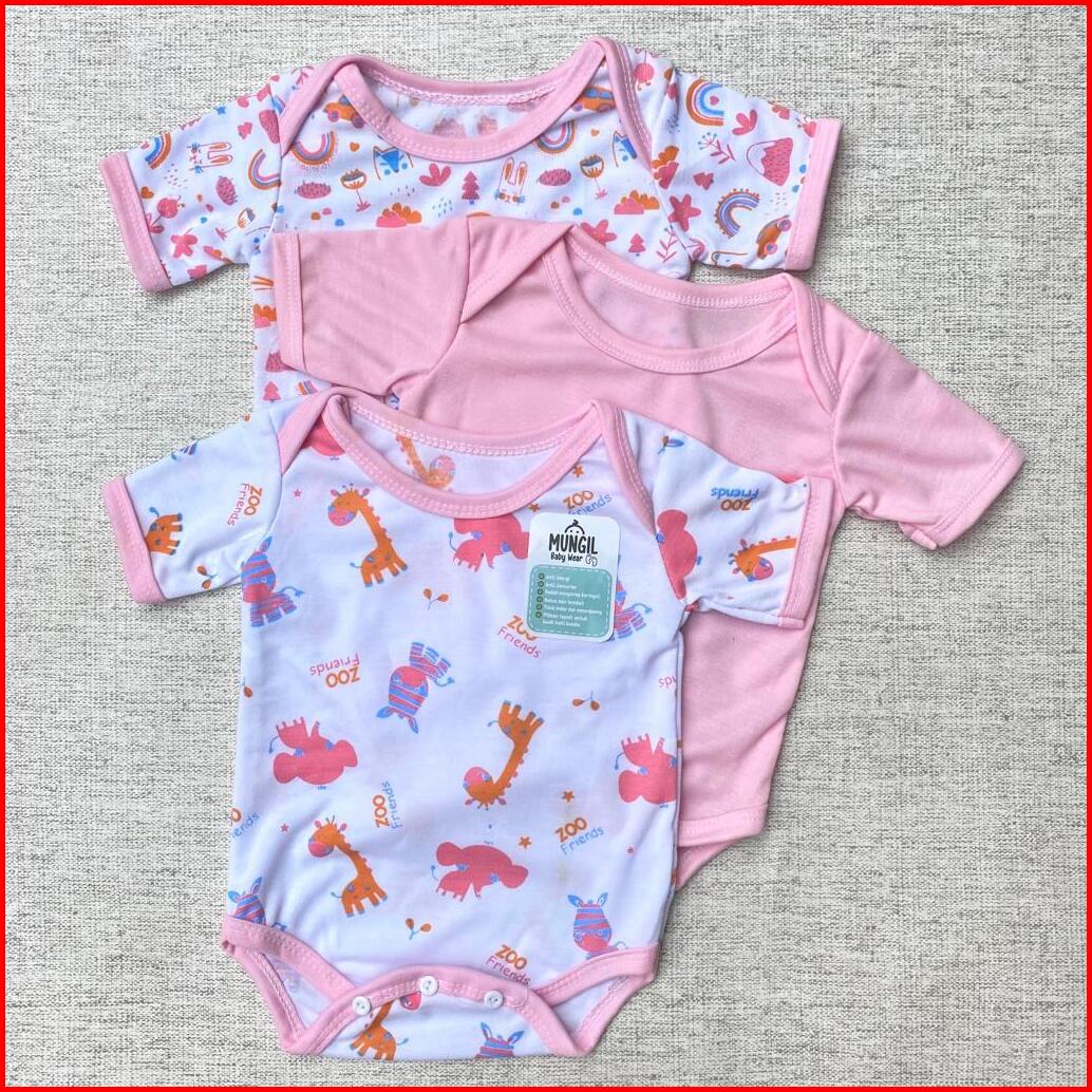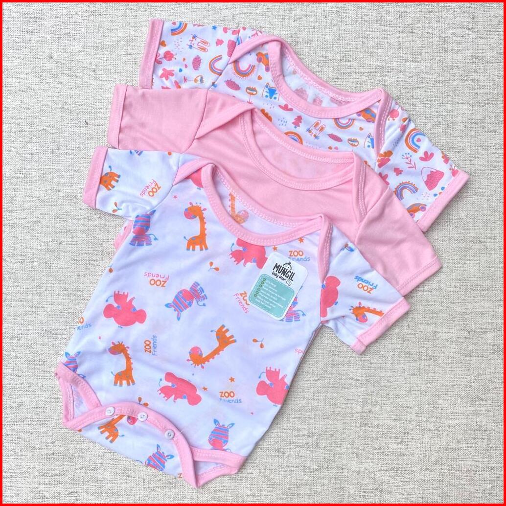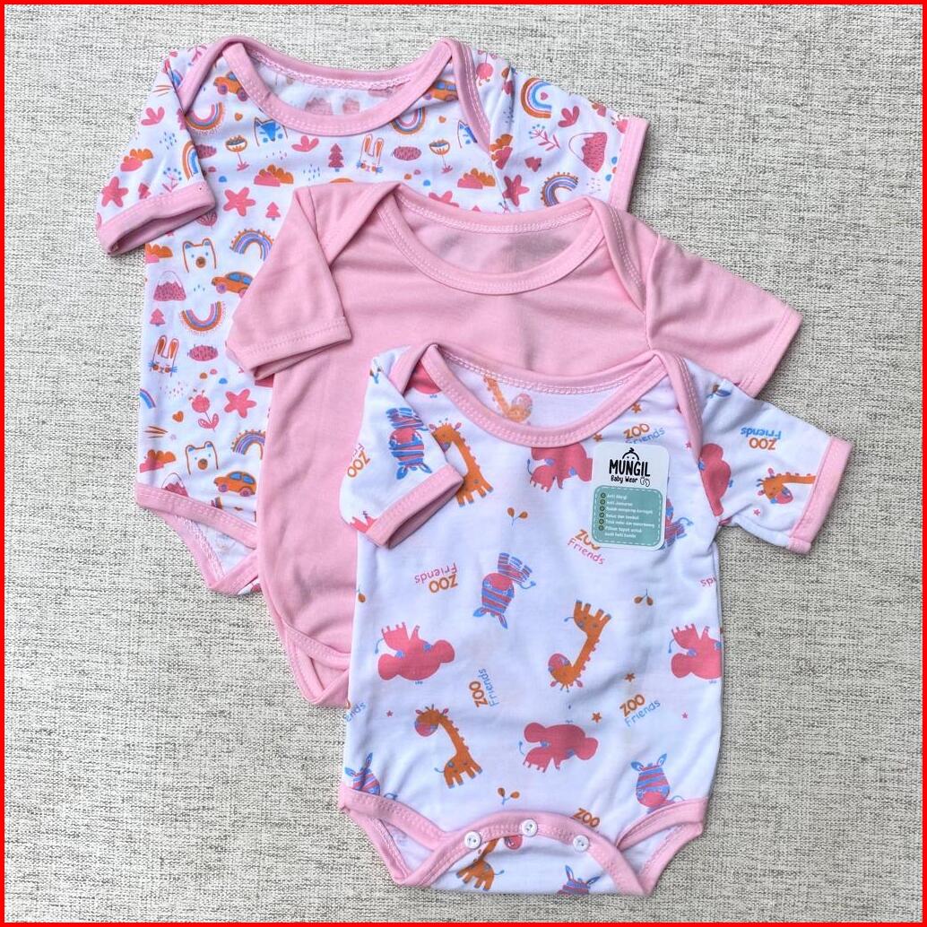 3 Pcs Jumper Bayi Bodysuit Motif Full Sablon Jumper Bayi Series Pink Newborn Mungil Baby Wear