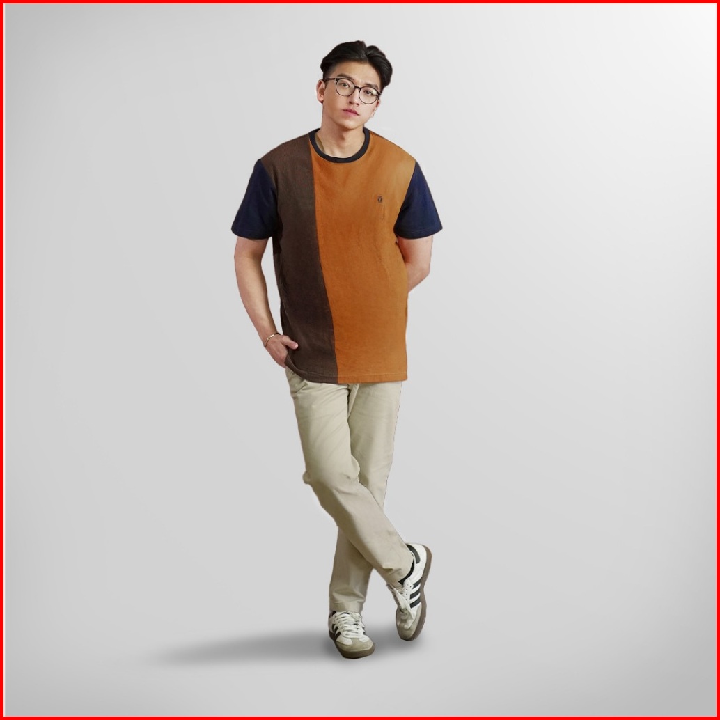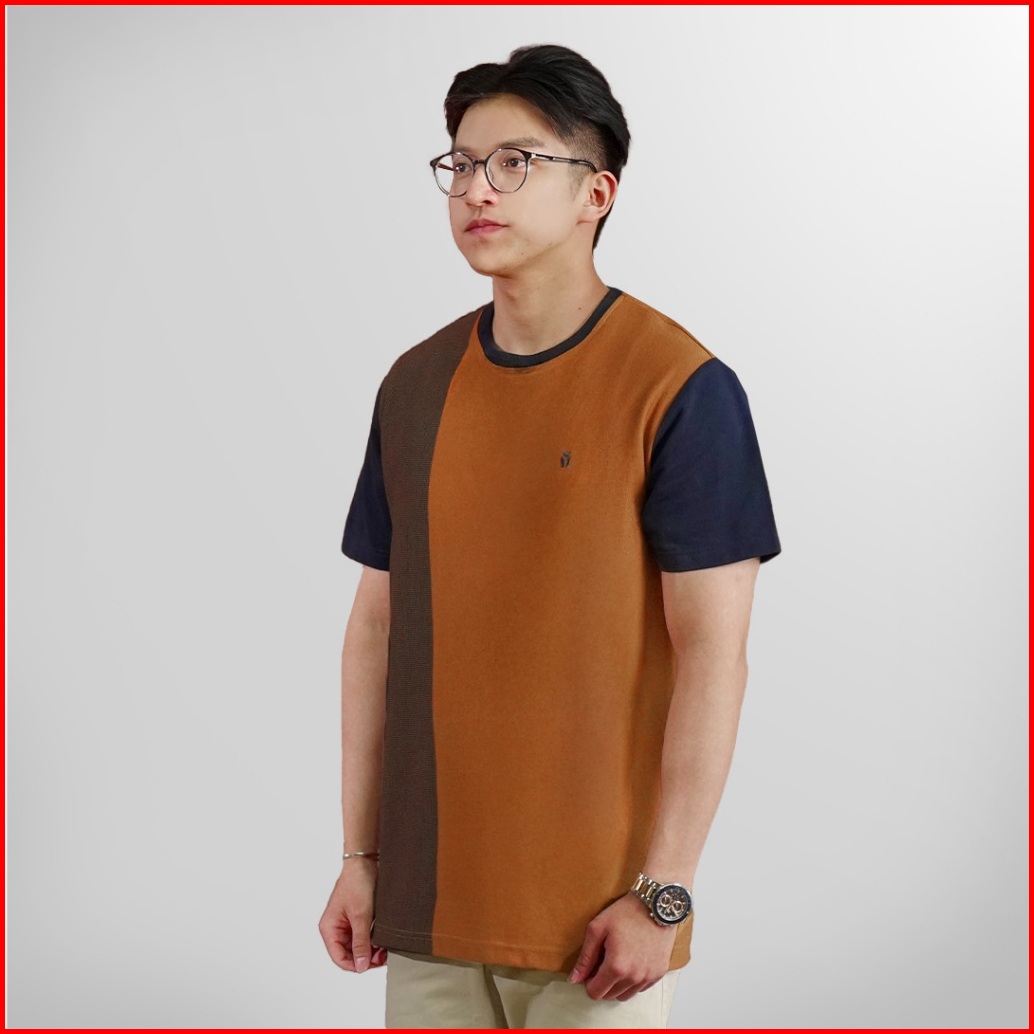 Matsuda Yoshikawa Warna Pumpkin T Shirt Pria Kaos Stripe