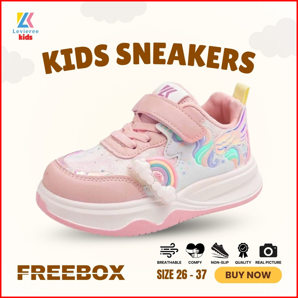 Lvrkids Solar Free Box Size 26-37 Sepatu Sneakers Anak Cewek Motif Rainbow Lv0696