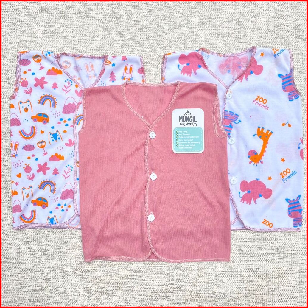 3 Pcs Baju Kutung 3 Pcs Celana Pop Baju Bayi Baru Lahir Series Pink Mungil Baby Wear