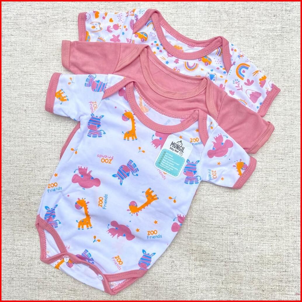 3 Pcs Jumper Bayi Bodysuit Motif Full Sablon Jumper Bayi Series Pink Dusty Newborn Mungil Baby Wear