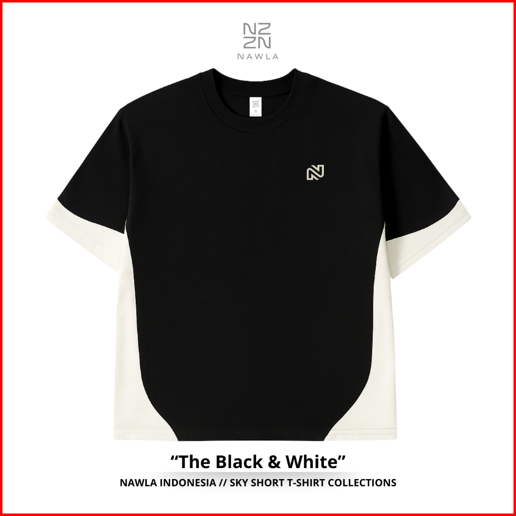 Nawla - Baju Atasan Pria Kaos Lengan Pendek T-shirt Two Tone Bahan Katun Warna Hitam Biru Navy Putih