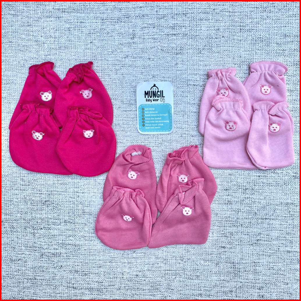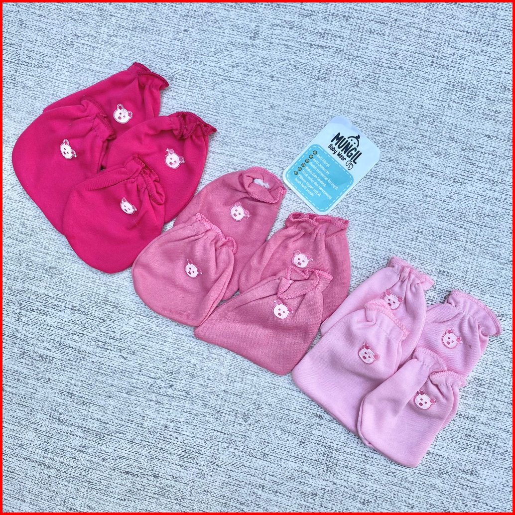 3 Pasang Sarung Tangan Kaki Sarung Tangan Sablon Sertaki Bayi Baru Lahir Seri Pink Polos Newborn Mungil Baby Wear