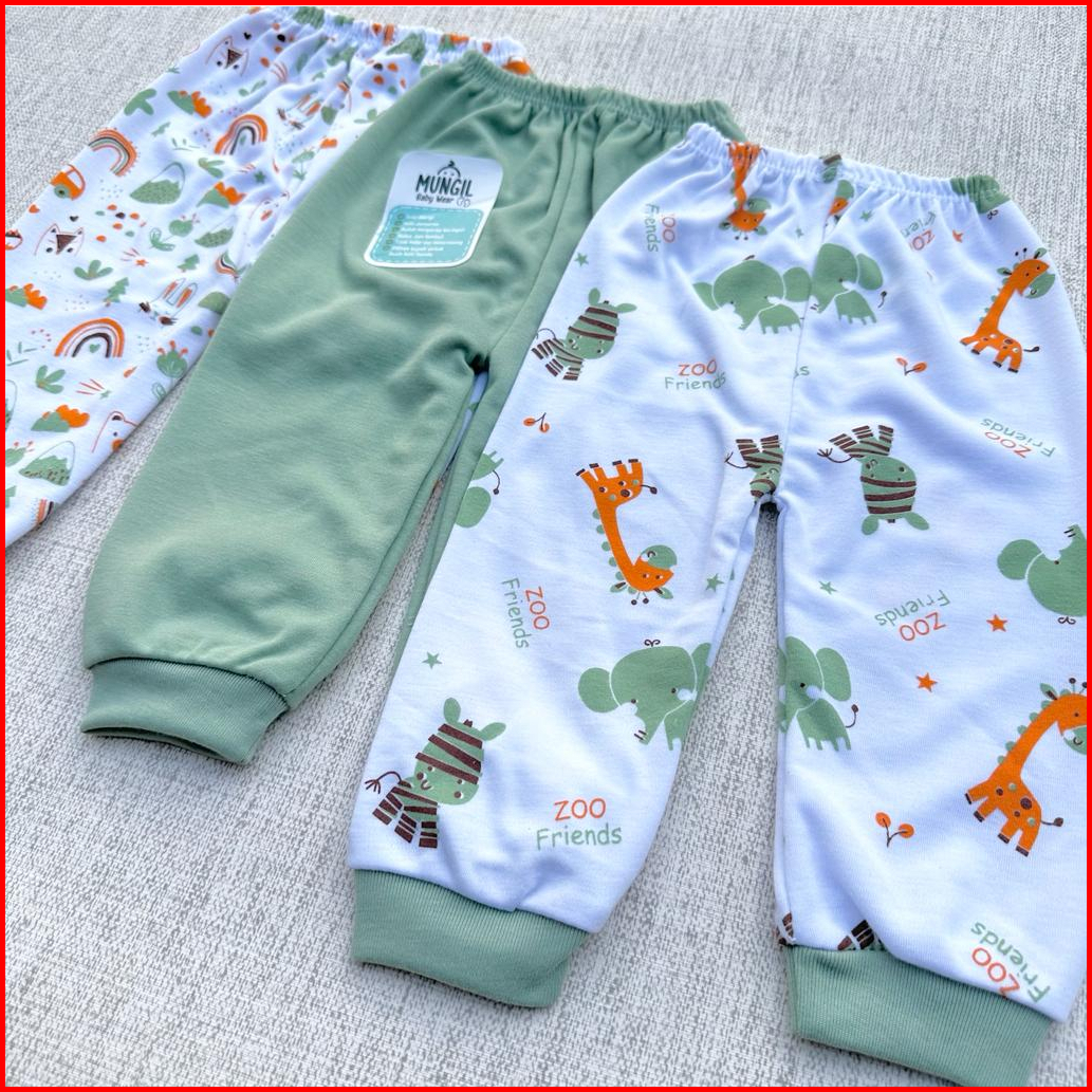 3 Pcs Celana Bayi Baru Lahir Celana Panjang Sage Green Newborn Mungil Baby Wear