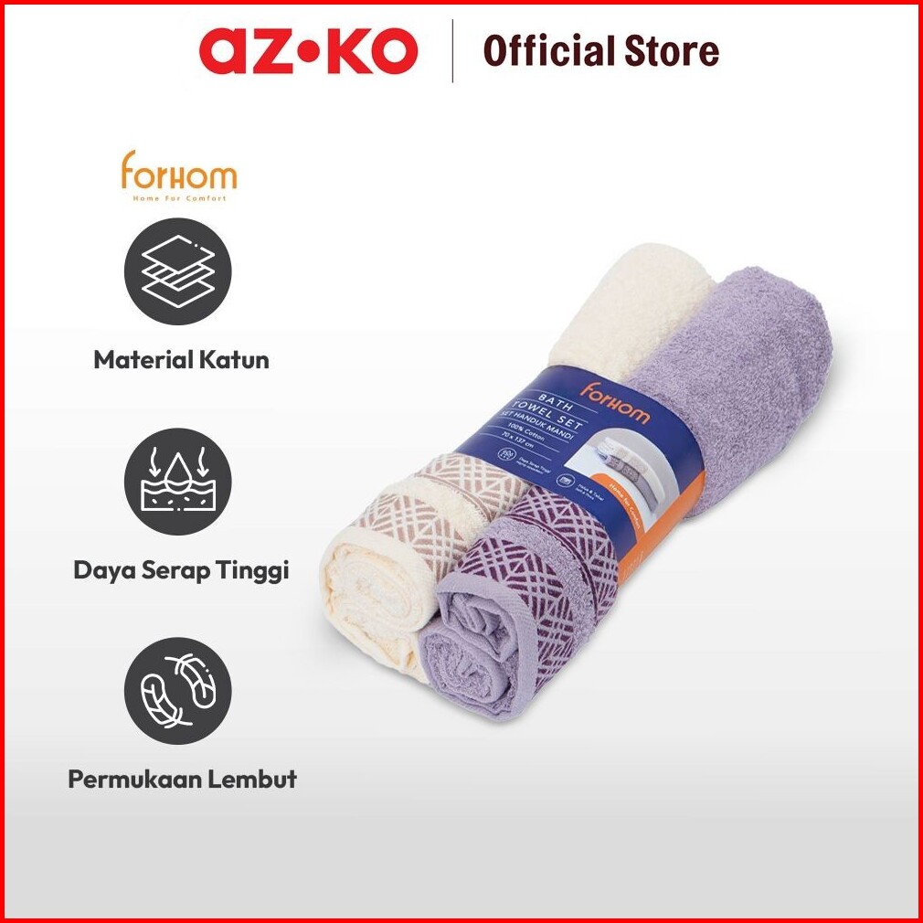 Azko Forhom 70x137 Cm Set 2 Pcs Handuk Mandi - Ungu Lavender Krem Bath Towel Travel Towels Handuk Badan Perlengkapan Man