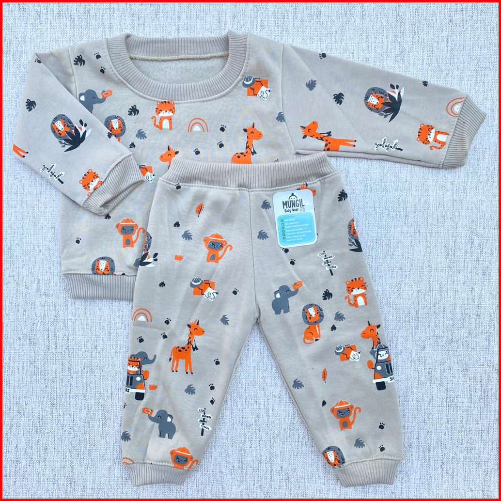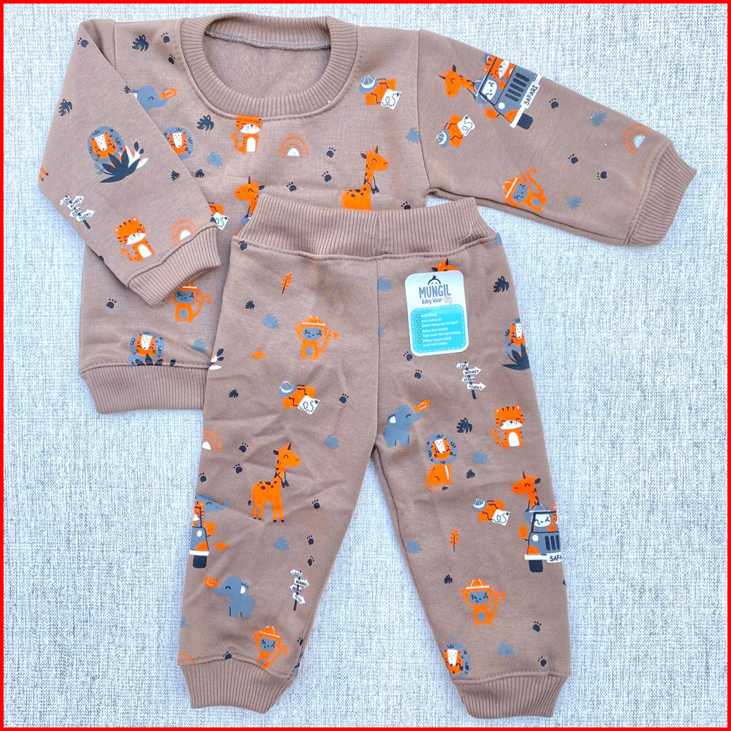Stelan Baju Bayi Stelan Sweater Celana Joger Motif Safari Usia 3-12 Bulan Mungil Baby Wear