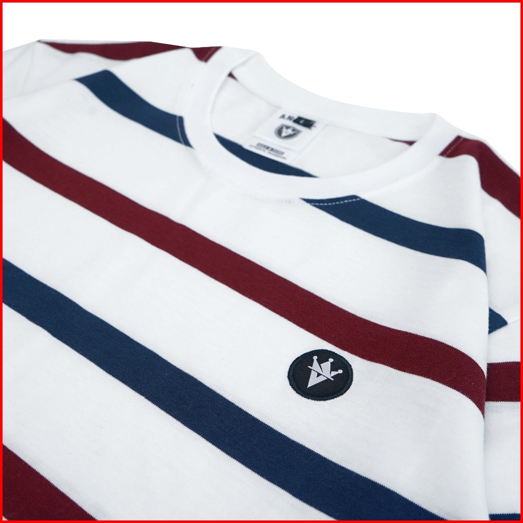 Angelic Holynpure - T-shirt Salur Cotton 24s White - Navy Maroon