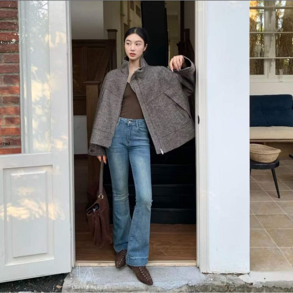 Cutbray jeans wanita - Celana Cutbray Highwaist Warna Light blue Retro Stretchy terbaru
