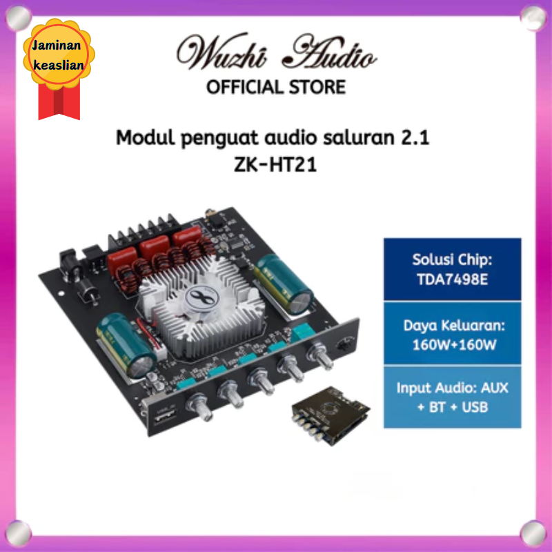 Wuzhi Audio | ZK-HT21 Bluetooth digital power amplifier modul 2.1 channel 【TDA7498E】 subwoofer nada tinggi dan rendah 16