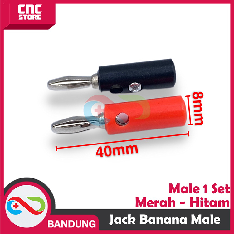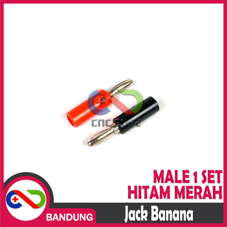 Jack Banana Male 1 Set Black Red Sepasang Hitam Merah Kabel Max 4mm Panjang 38mm