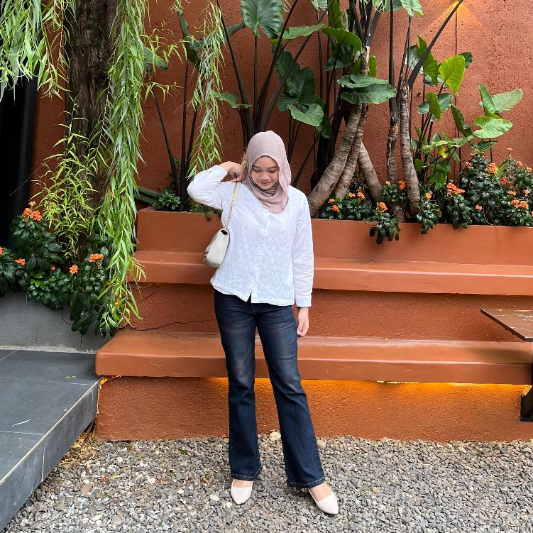 KVN - Celana Jeans Cutbray High Waist Wanita Strech Retro Whisker Celana Panjang