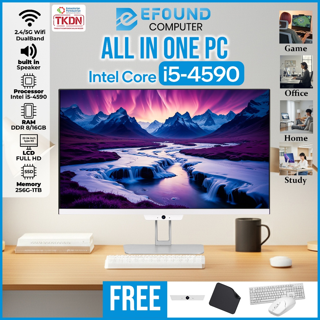 eFound PC All-in-One Intel Core i5-4590 Super Tipis, Full HD 27 inch K5, 16GB RAM, 1TB SSD Terbaru untuk Rumah, Kantor, Sekolah & Gaming