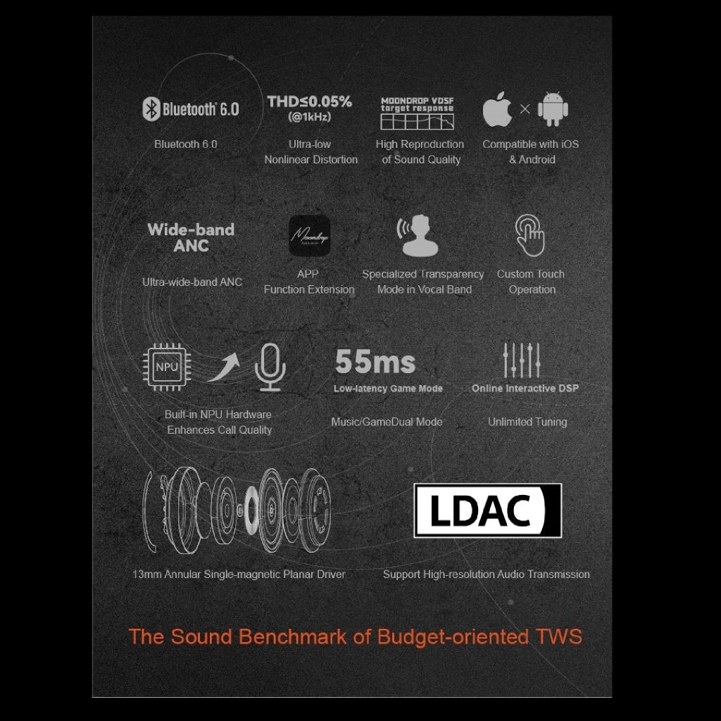 Moodrop Space Travel 2 Ultra Hi-Fi True Wireless Noise Cancelling Earbuds Support LDAC TWS Original