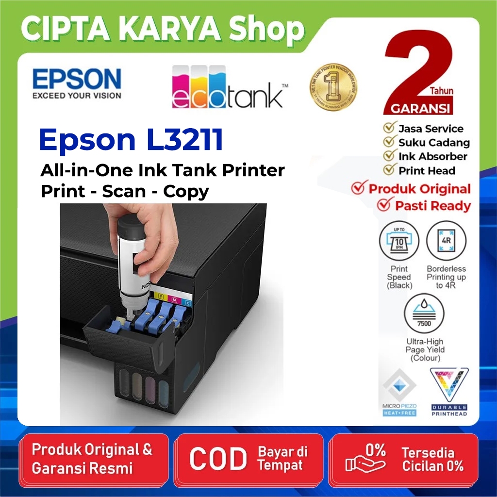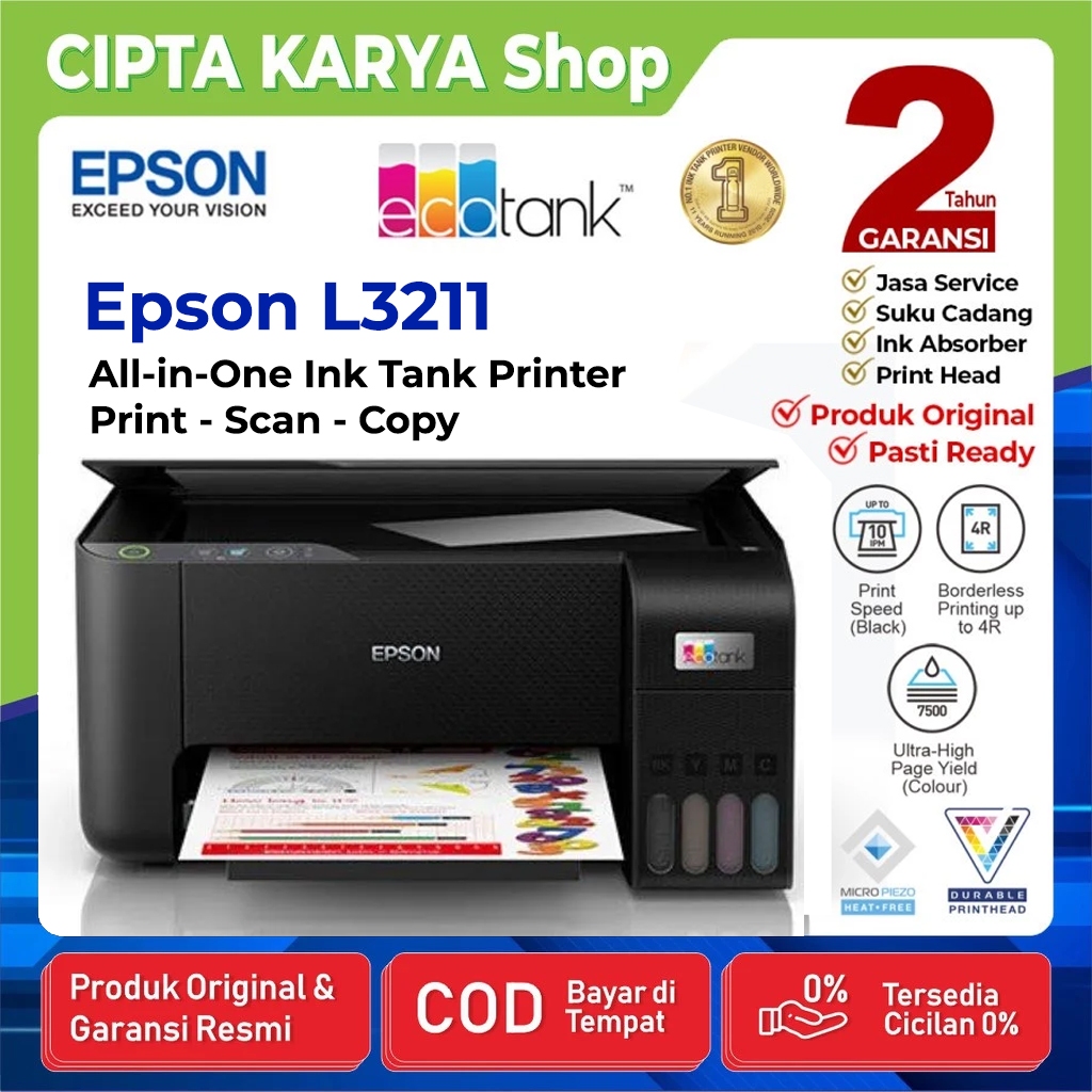 Epson L3211 All-in-One Ink Tank Printer Original Garansi Resmi 2 Tahun Print Scan Copy