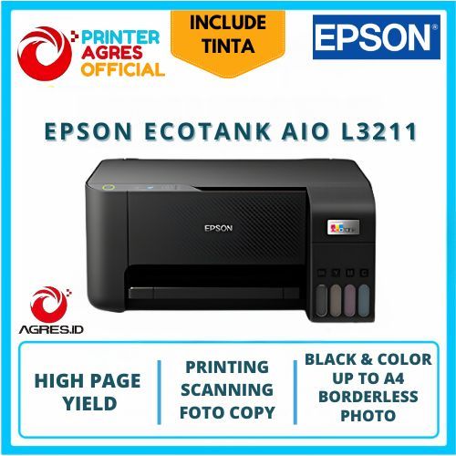 Epson L3211 All-In-One Tank Printer Scan Copy Print / Epson EcoTank L3211 TKDN 3-in-1 Printer Print/Scan/Copy A4 All-in-One + Tinta Isi Ulang Hemat