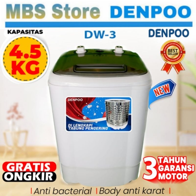 MESIN CUCI MINI DENPOO PORTABEL WASH & SPIN DW-3 ( 4,5KG )