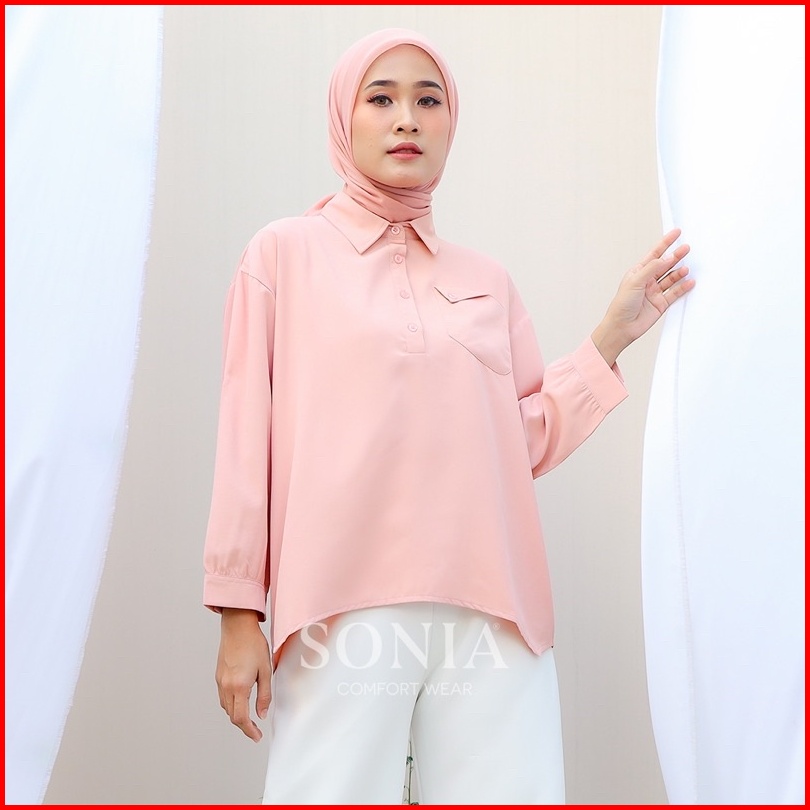 Kathy Top B11933 - Sonia Kemeja Wanita Chiffon Premium Korea Kemeja Wanita Sifon Lengan Panjang Kemeja Wanita Premium Ke