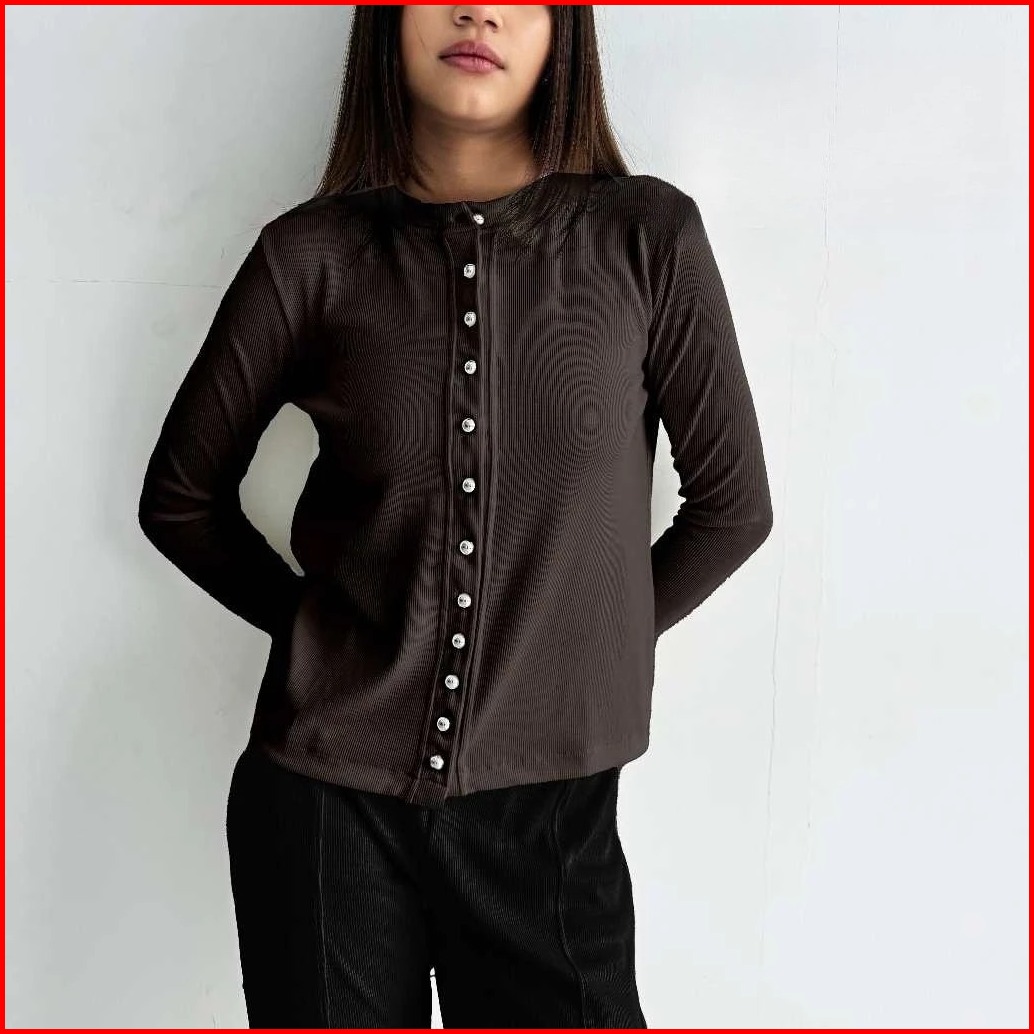 Kaia Top Long Sleeve Full Button Vintage Atasan Knit Kancing Lengan Panjang Basic Korean Top Glam