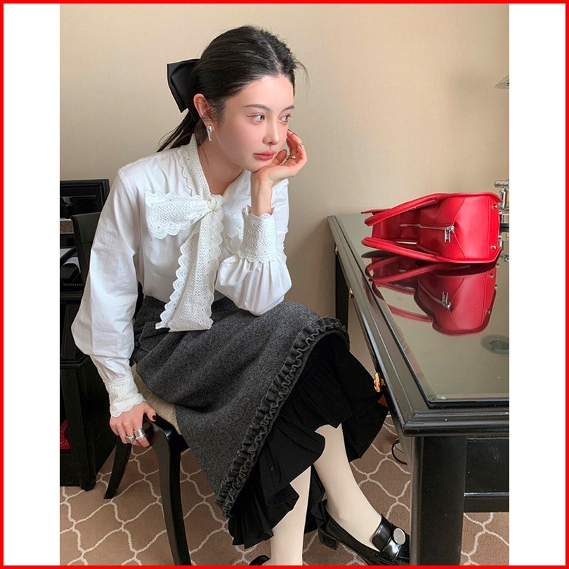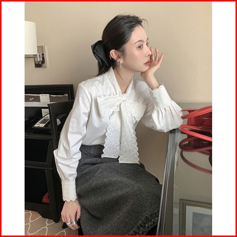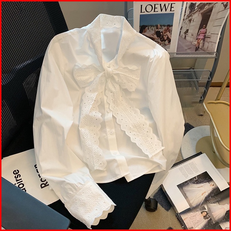 Loose Shirt Pita Busur Putih Katun Poly Kemeja Evina Ootd Wanita Kemeja Talitha Kemeja Oversize Kasual Polos Kemeja Basi