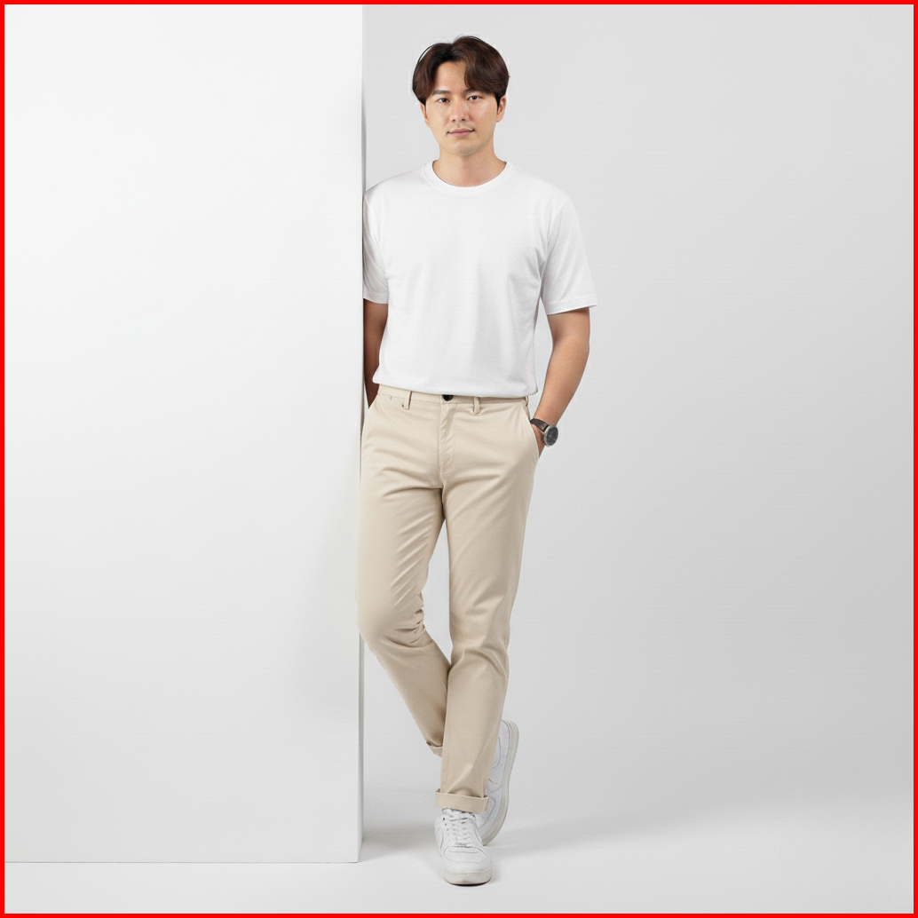 Celana Chinos Panjang Pria Cream Cotton Stretch Nyaman