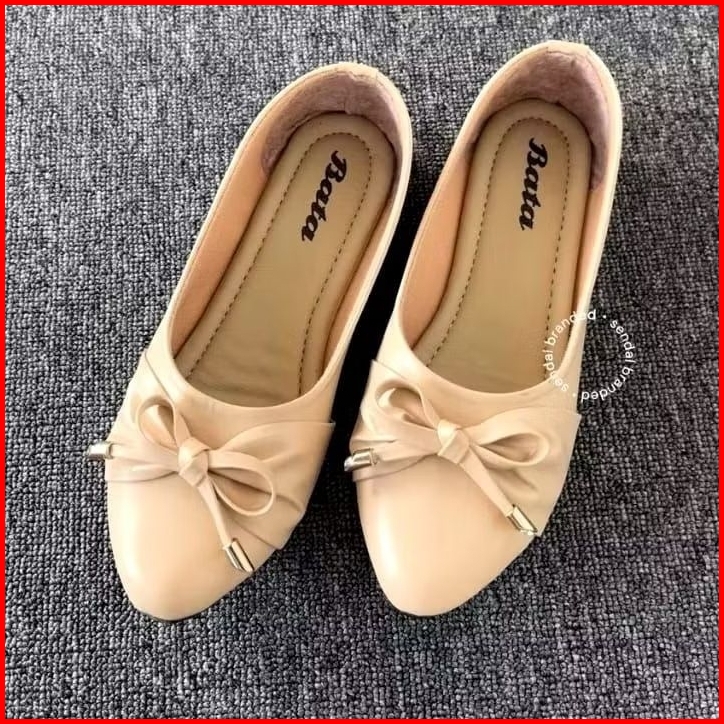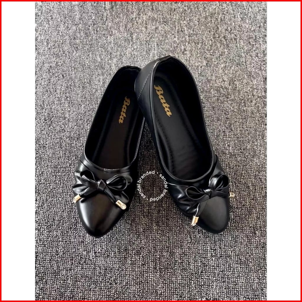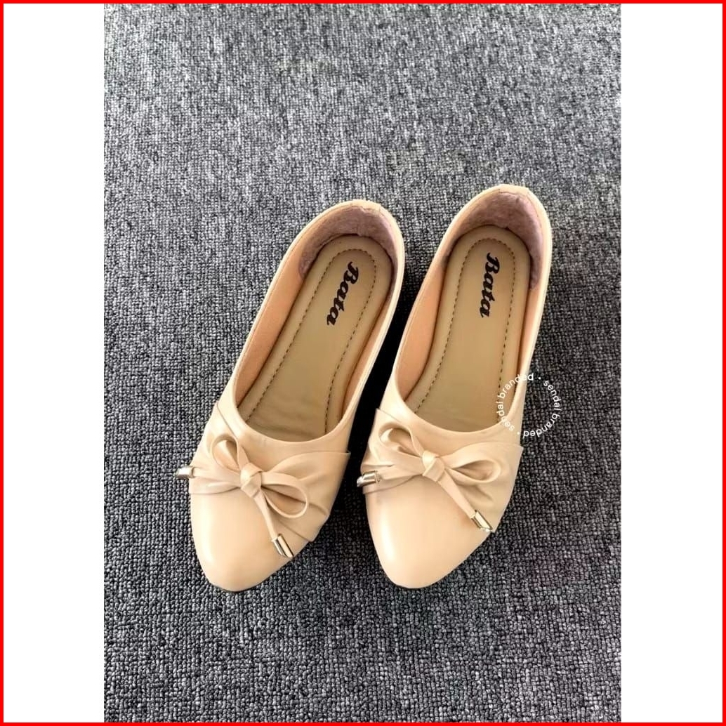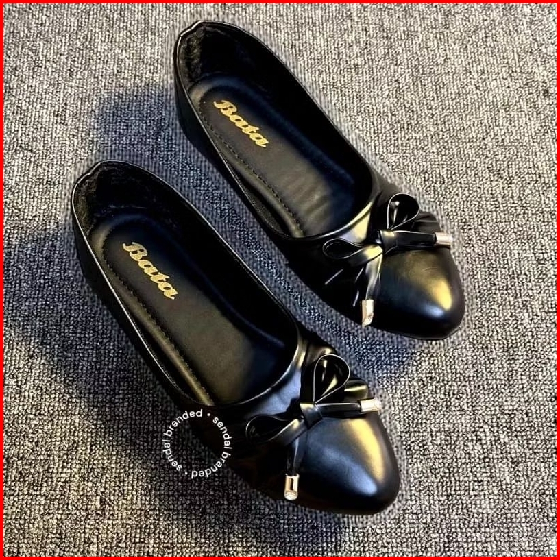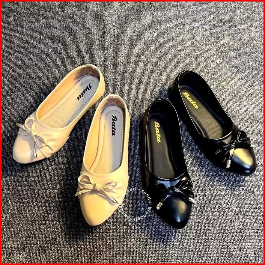 Sepatu Flatshoes Wanita Motif Pita Hitam Krem - Bt Series