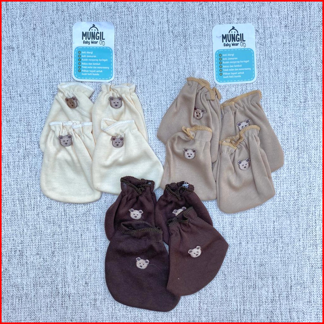 3 Pasang Sarung Tangan Kaki Sarung Tangan Sablon Sertaki Bayi Baru Lahir Seri Coklat Polos Newborn Mungil Baby Wear