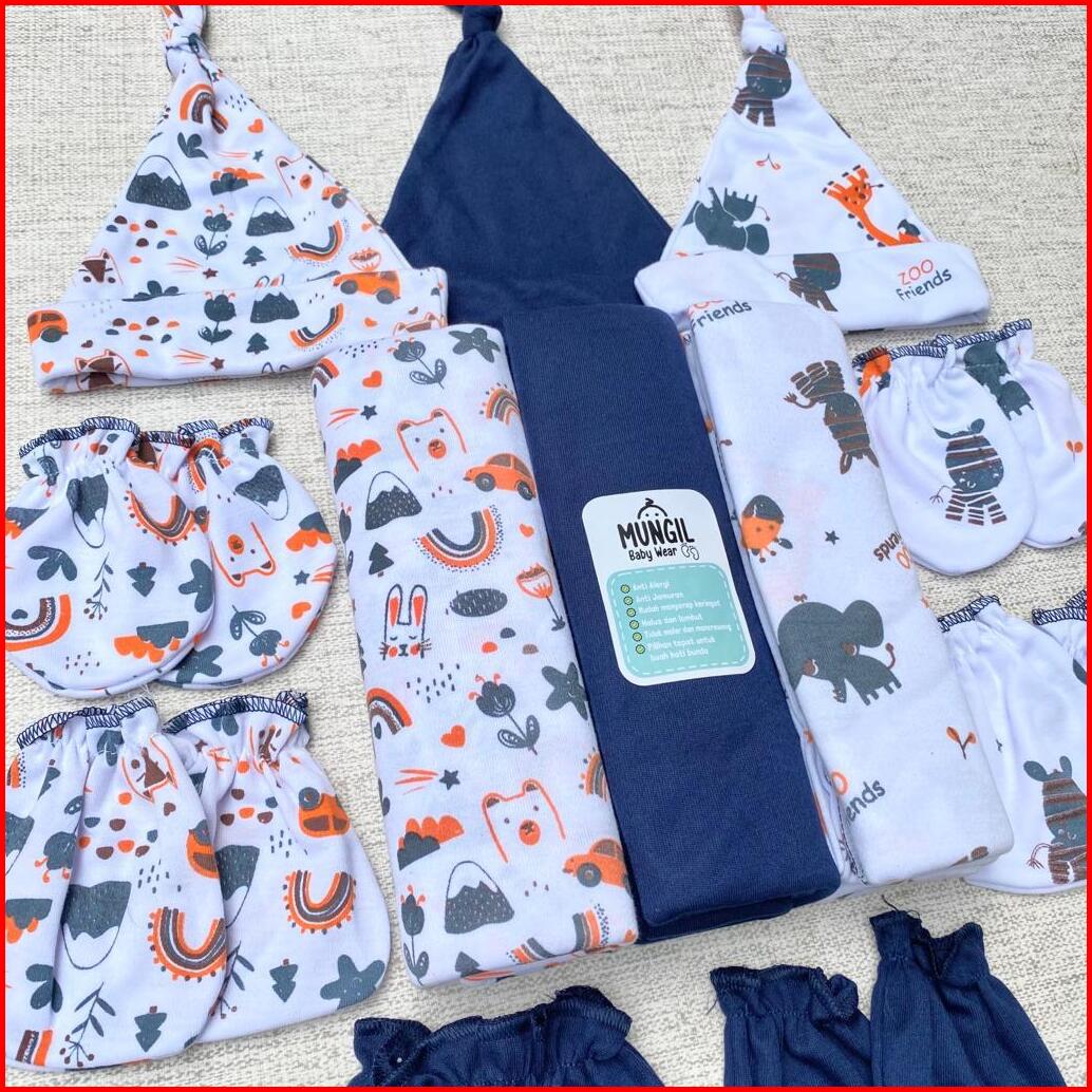 Paket Lengkap Bedong Bayi Baru Lahir Bedong Topi Dan Sartaki Seri Navy Perlengkapan Lahiran Mungil Baby Wear