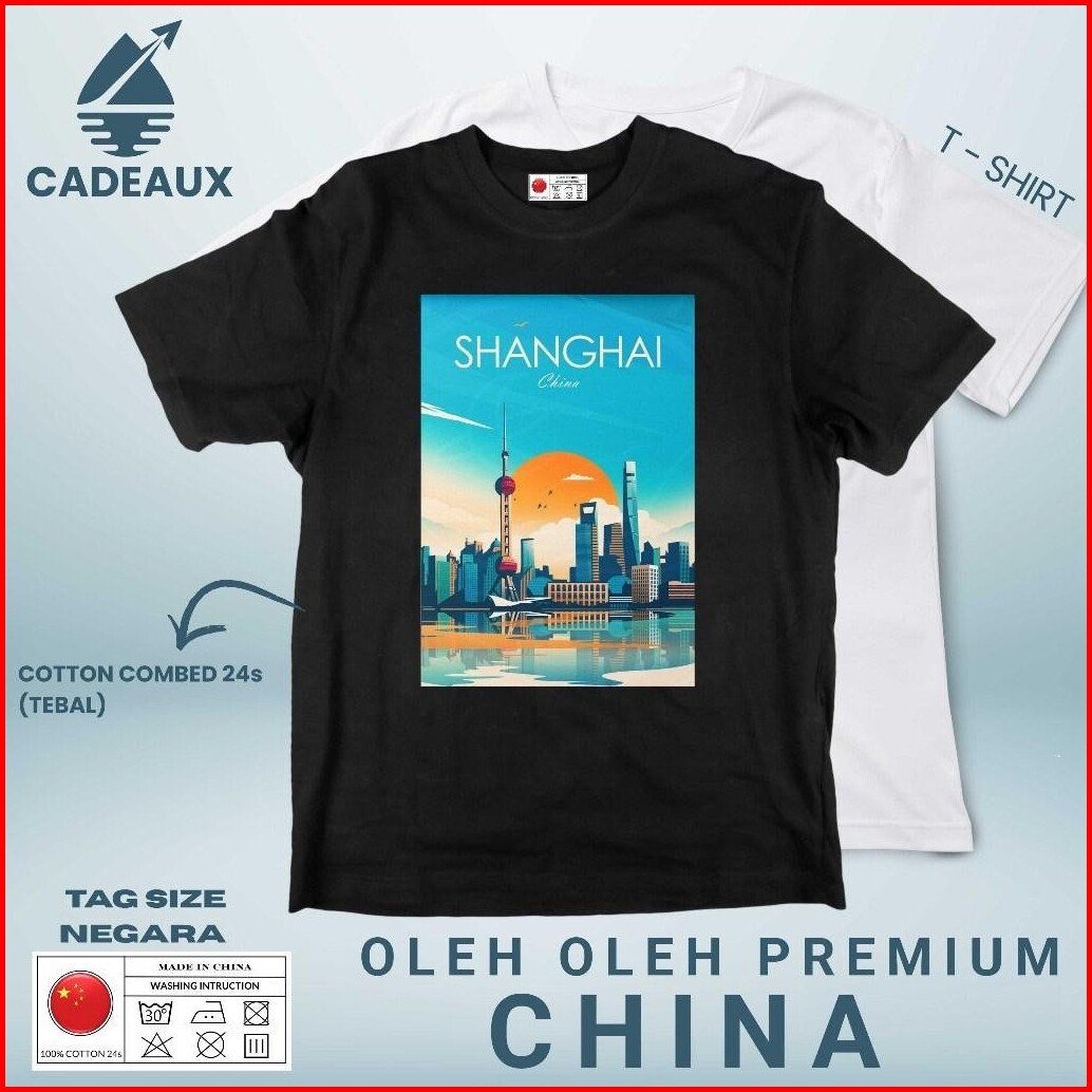 Bosgo Kaos Oleh Oleh China Shanghai Beijing Shanghai Wuhan Chengdu Hangzhou T-shirt Cotton Combed 24s Souvenir Premium G